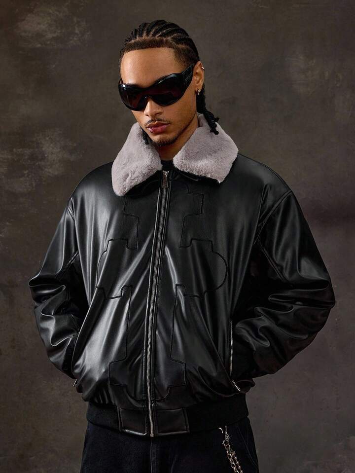 Street Life Men's Fashionable Furry Collar PU Leather Jacket, Autumn/Winter, Grunge