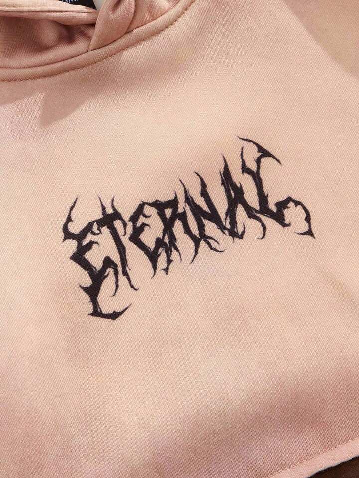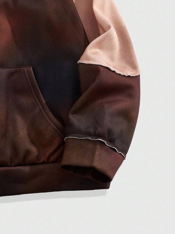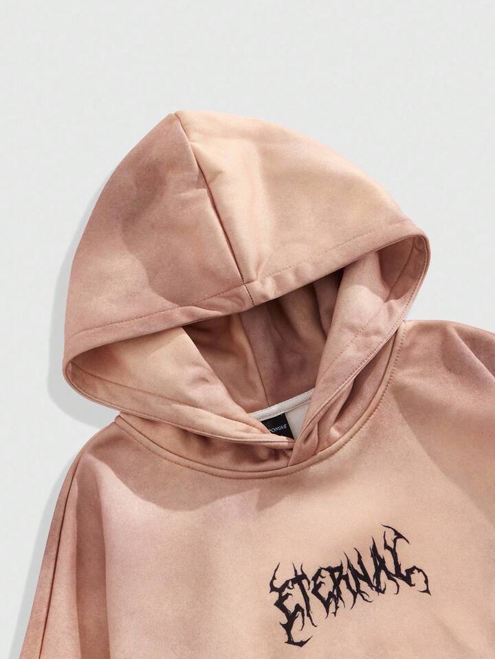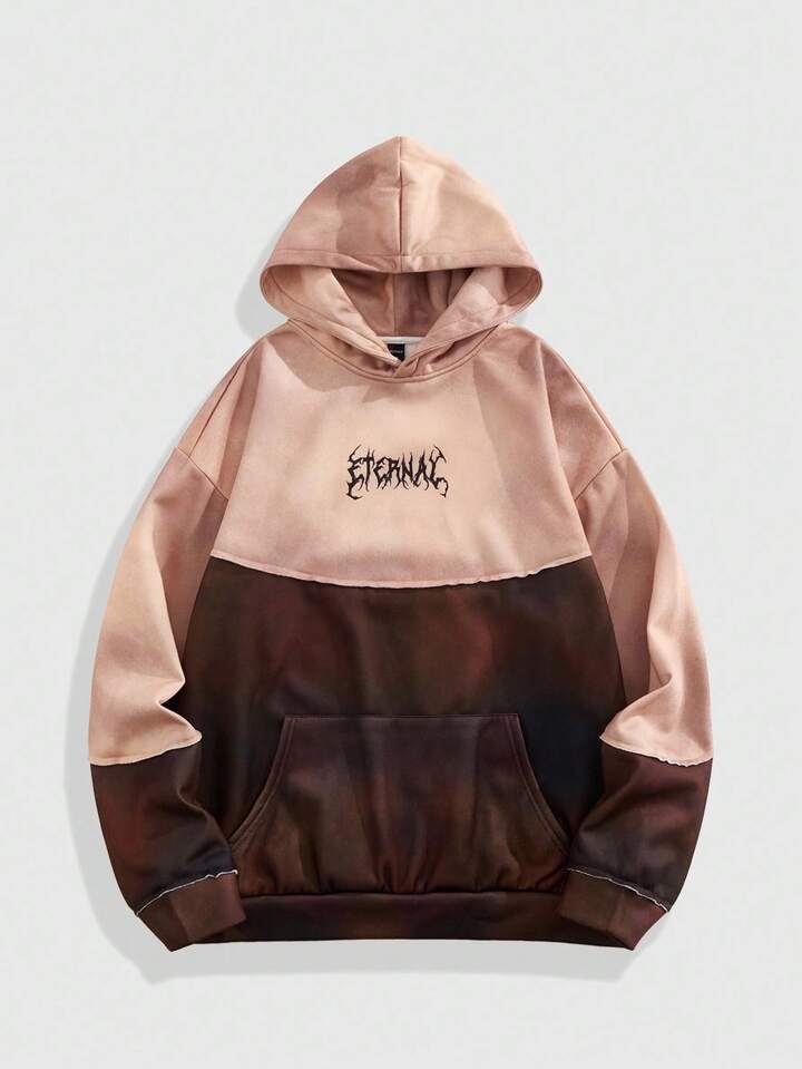 Street Life Men's Fashionable Street Gothic Hoodie With Letter Print, Two-Tone, Drop Shoulder, Loose Fit, Pocket, Autumn/Winter