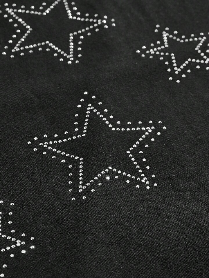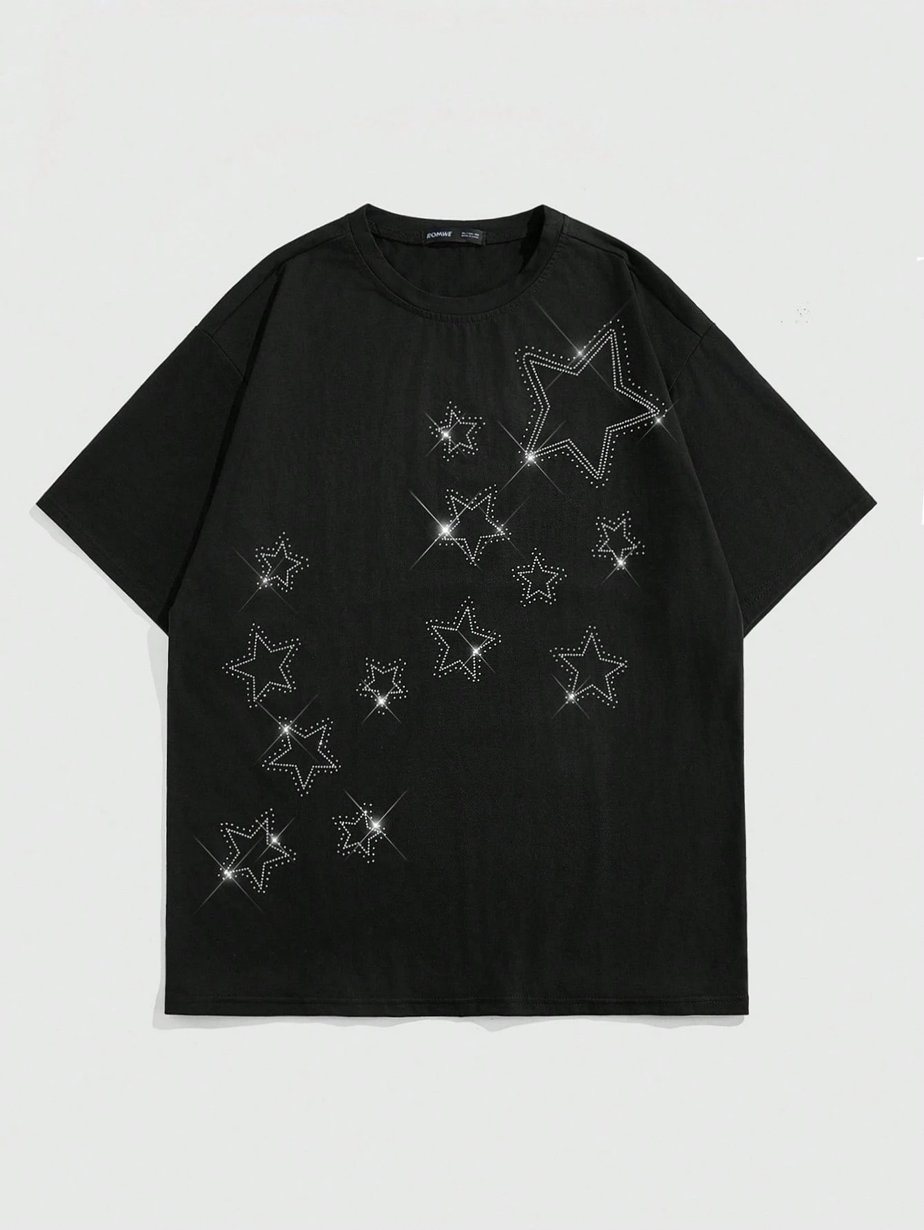 Street Life Men's Five-Pointed Star Rhinestone Decor Short Sleeve T-Shirt,Spring/Summer