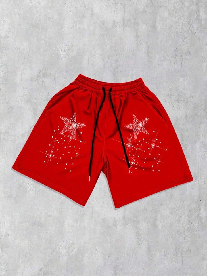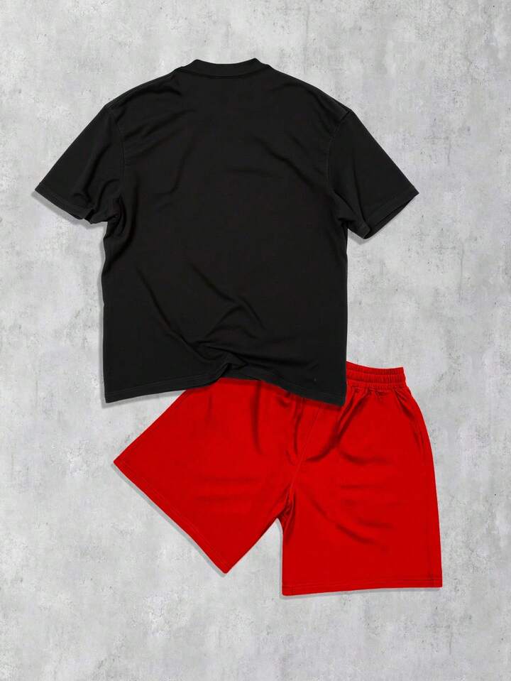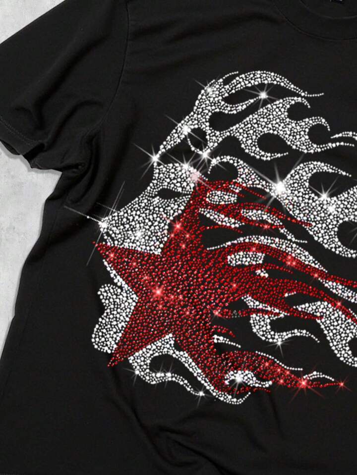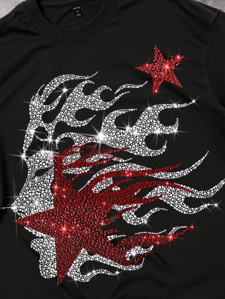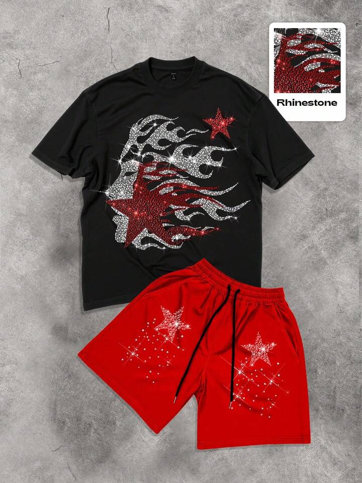 Street Life Men's Flame Face Short Sleeve Rhinestone Star T-Shirt And Shorts Set