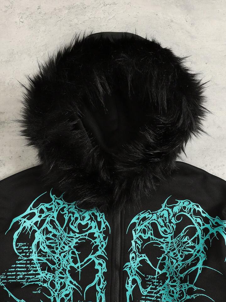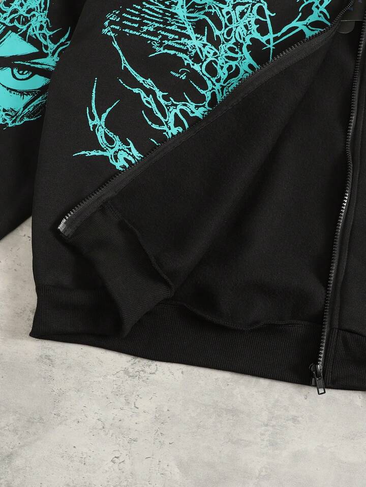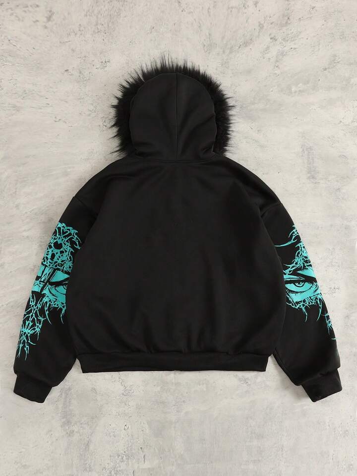 Street Life Men's Fleece Collar Gothic Printed Zip Up Hooded Sweatshirt , Fall/Winter