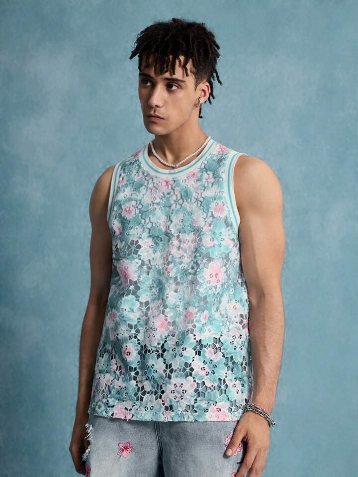 Street Life Men's Floral Print Round Neck Summer Vacation Casual Tank Top