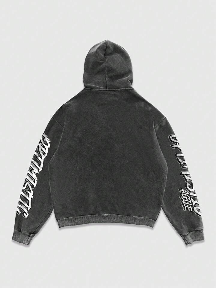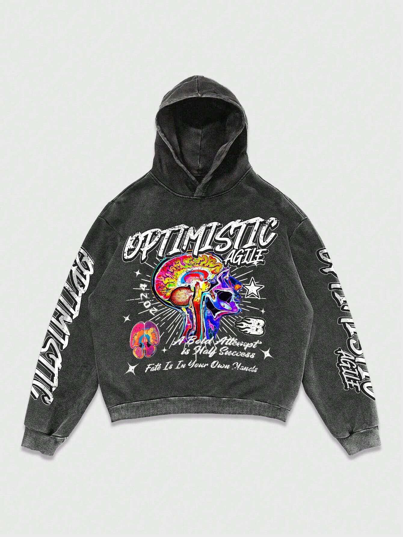 Street Life Men's Funny Graffiti Portrait Print Washed Vintage Hoodie, High Street