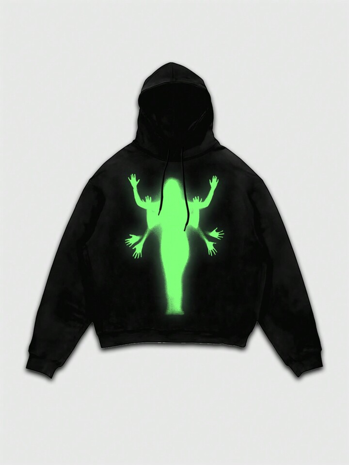 Street Life Men's Glow-In-The-Dark Graphic Printed Long Sleeve Hooded Sweatshirt, Autumn/Winter