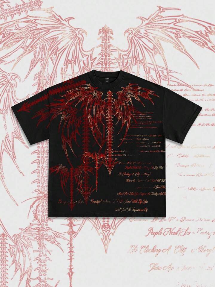 Street Life Men's Gothic Print Casual T-Shirt, Suitable For Spring/Summer