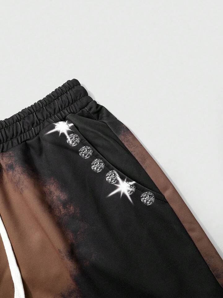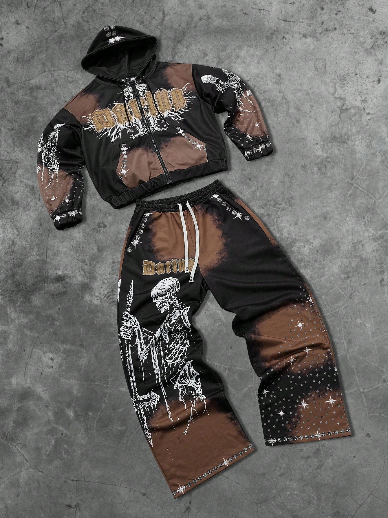 Street Life Men's Gothic Skeleton & Cross Print Zip-Up Hoodie Set With Sweatpants, Suitable For Autumn/Winter