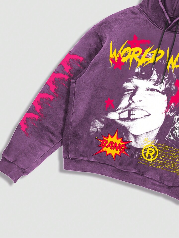 Street Life Men's Graphic Print Thermal Lined Hoodie, Suitable For Autumn And Winter