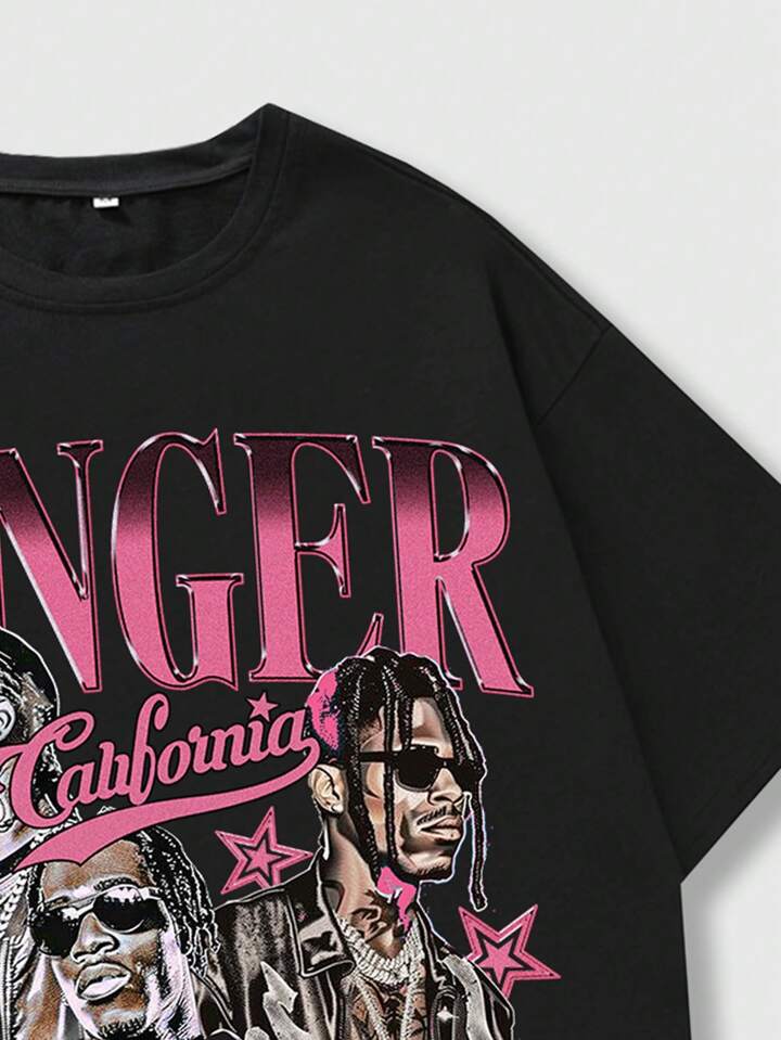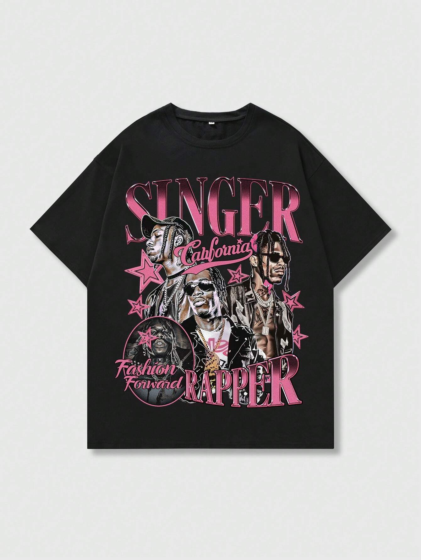 Street Life Men's Hip-Hop Printed Short Sleeve T-Shirt, Suitable For Day-To-Day Wear In Spring And Summer, School
