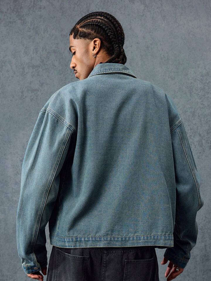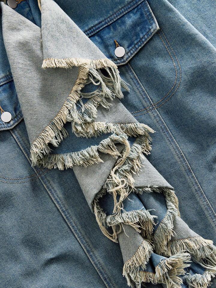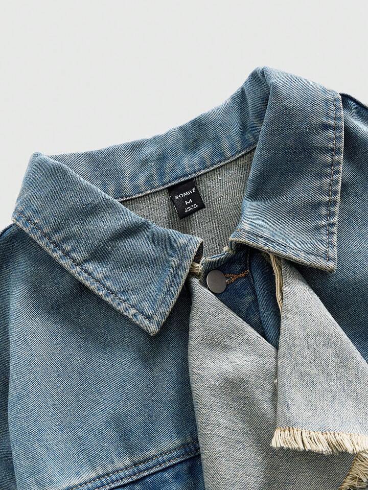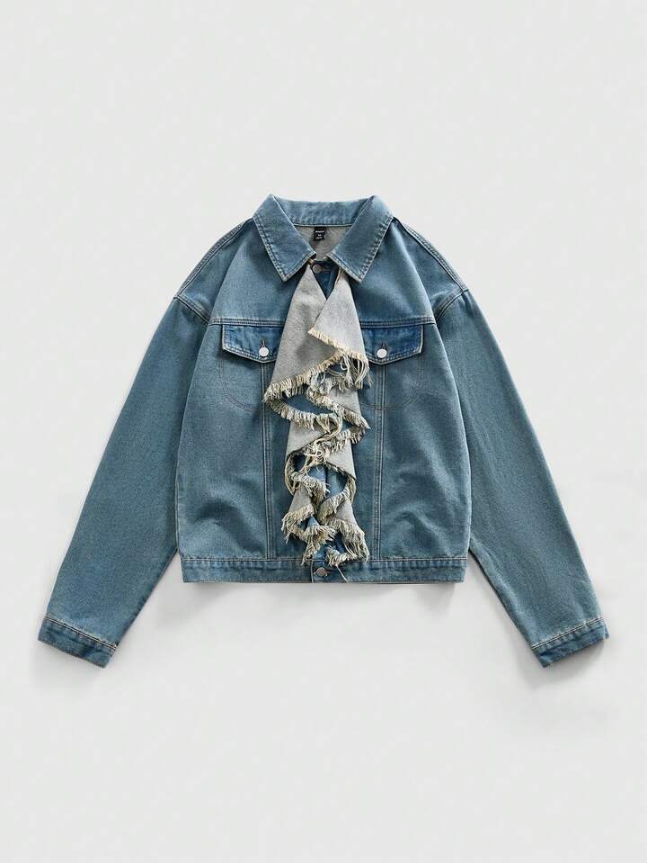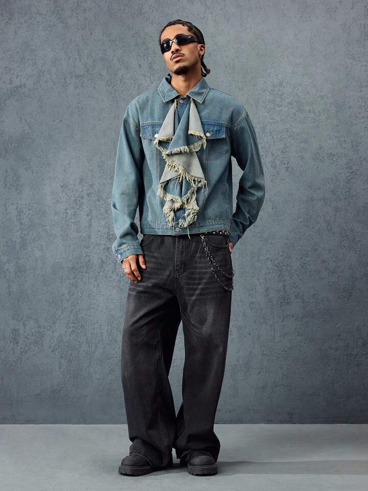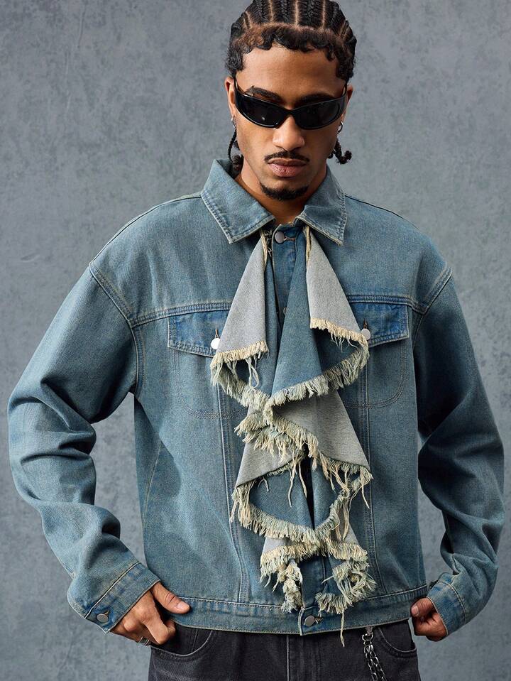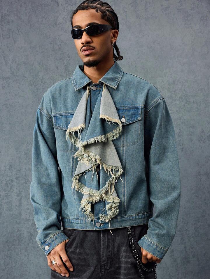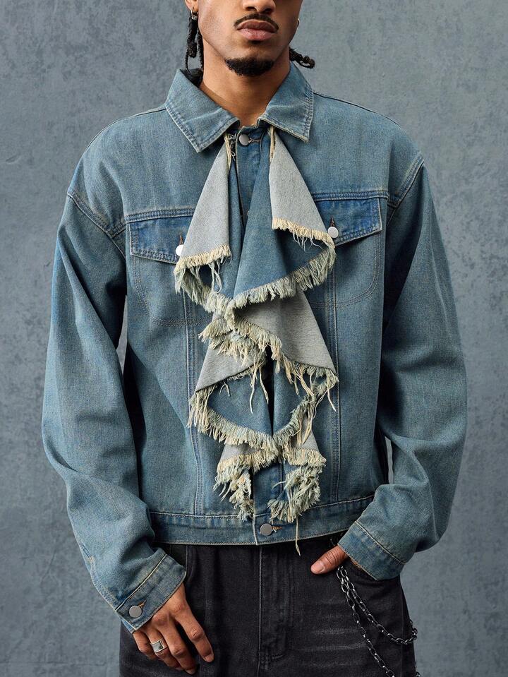 Street Life Men's Hip-Hop Ruffled Collar Denim Jacket