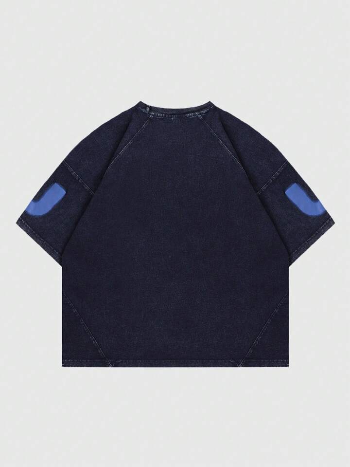 Street Life Men's Jersey Distressed Patchwork Digit Print Short Sleeve T-Shirt, Vintage