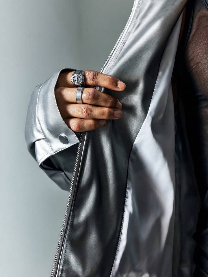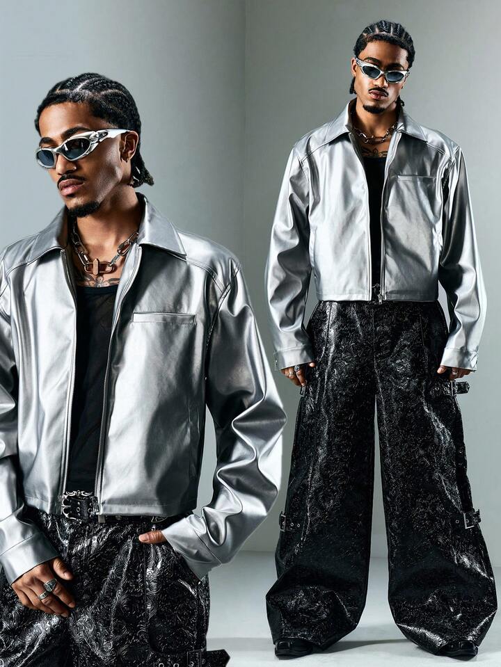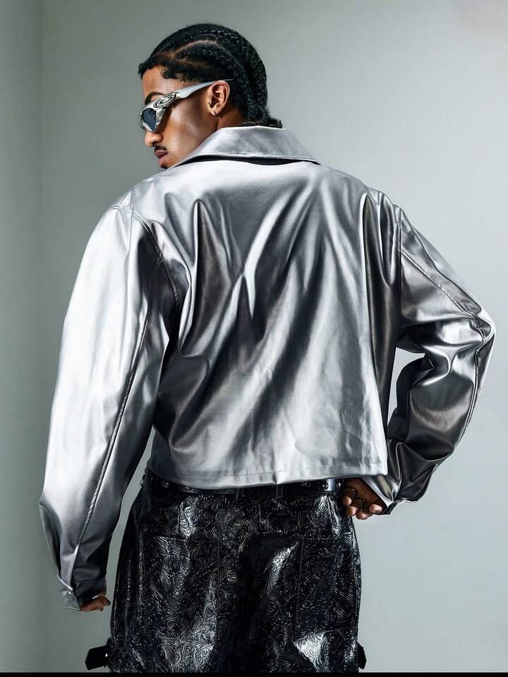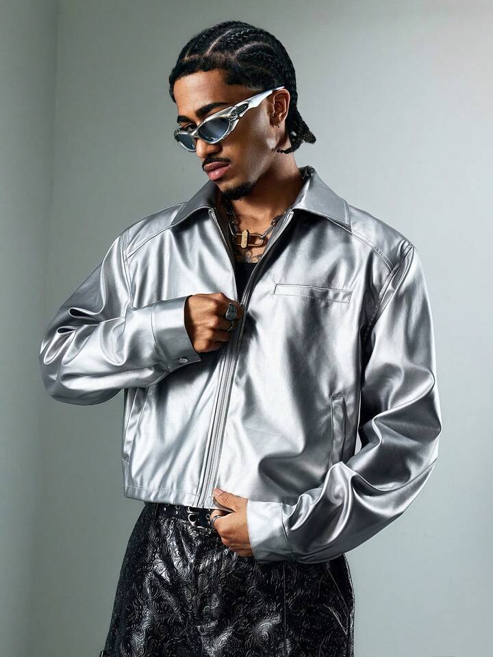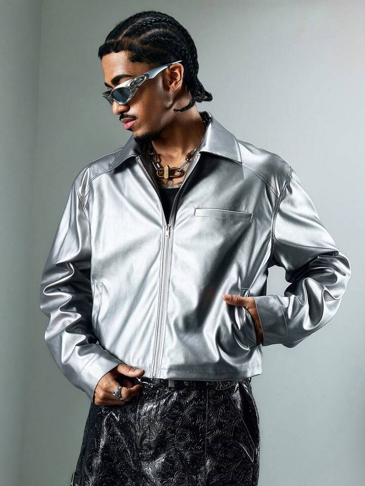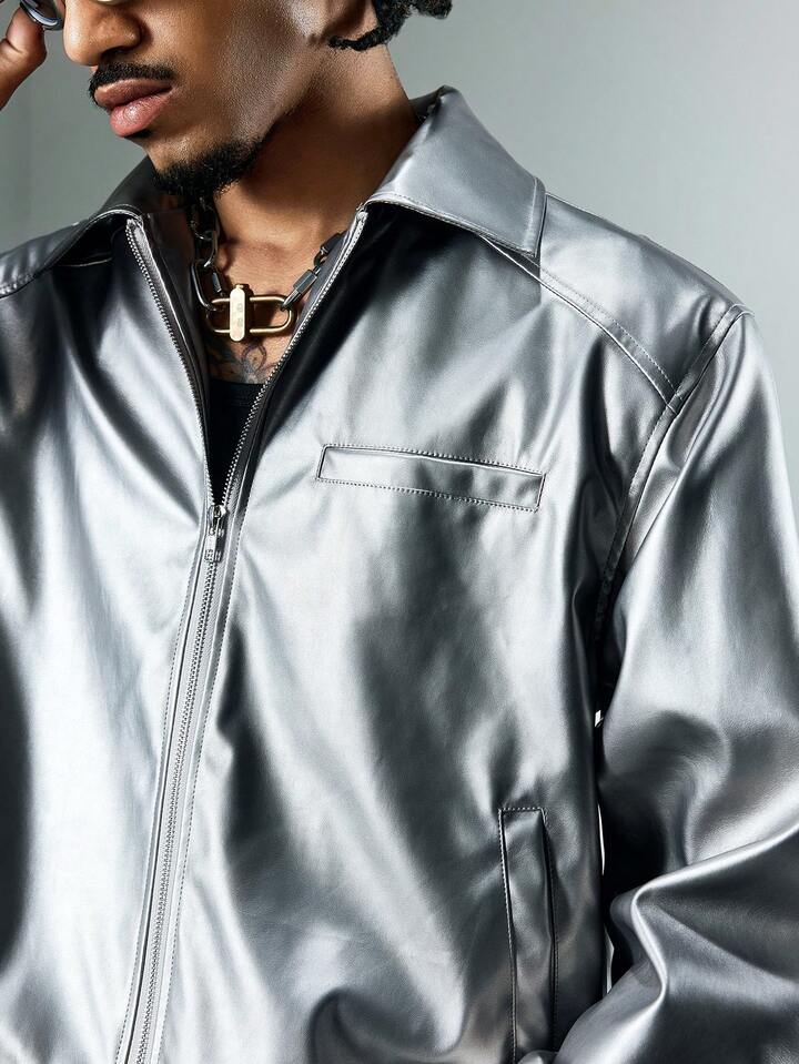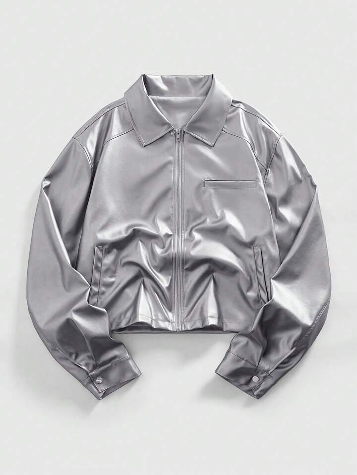 Street Life Men's KPOP Silver Minimalist Casual Long Sleeve Jacket