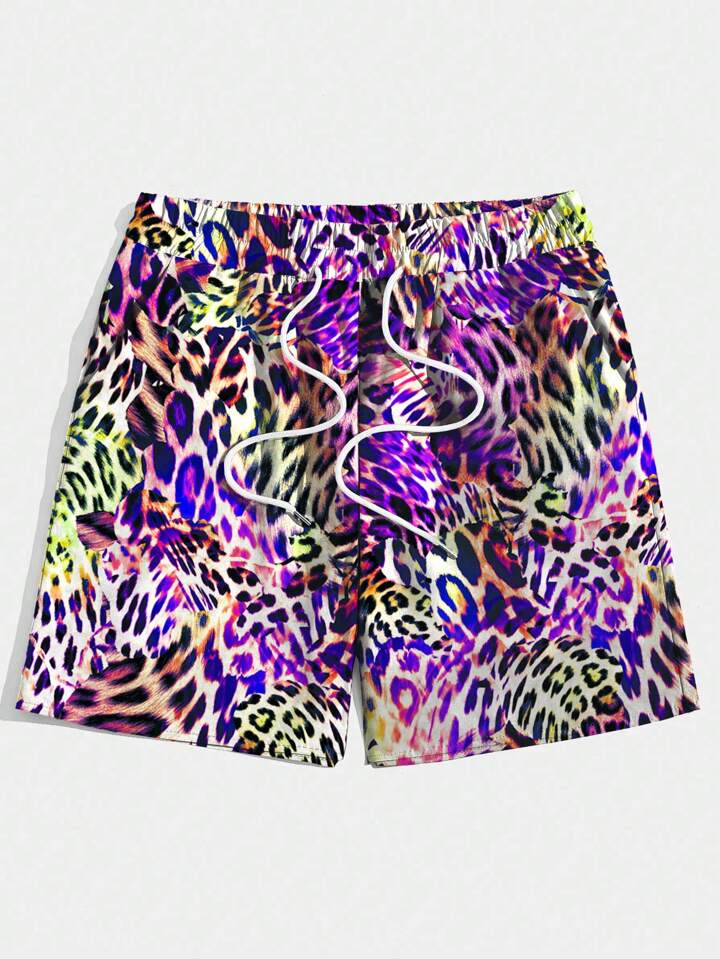 Street Life Men's Leopard Print Drawstring Shorts, Perfect For Summer