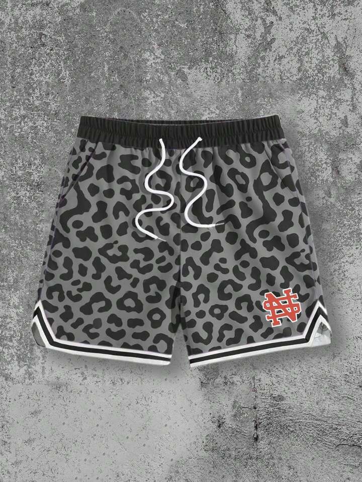 Street Life Men's Leopard Print Elastic Waist Drawstring Casual Summer Shorts