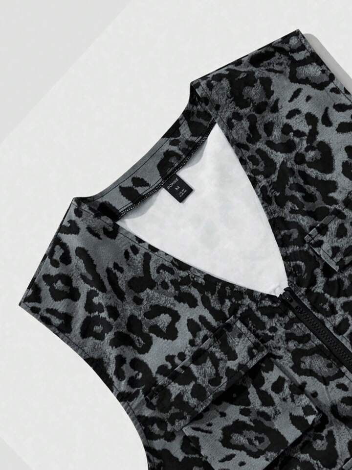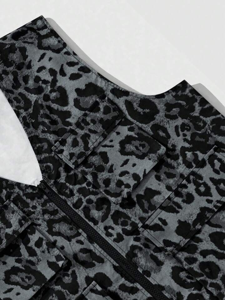 Street Life Men's Leopard Print Multi-Pocket Zipper Front Casual Vest