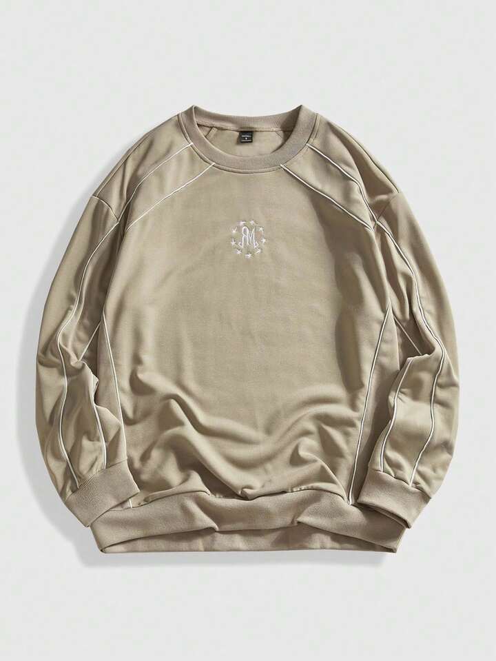 Street Life Men's Letter Embroidered Crew Neck Loose Fit Casual Pullover Sweatshirt