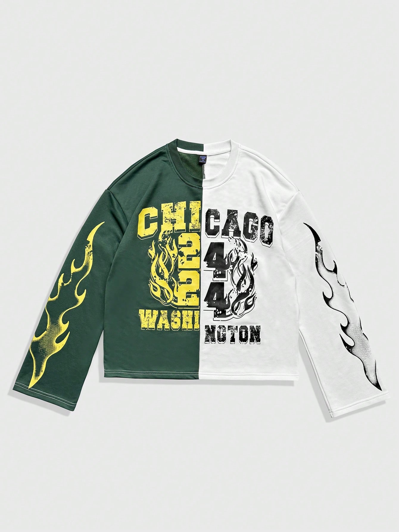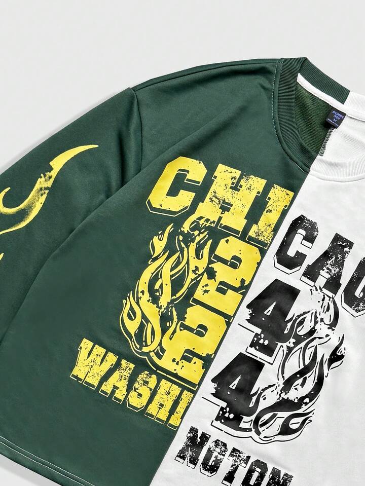 Street Life Men's Letter & Flame Print Contrast Color Round Neck Long Sleeve T-Shirt