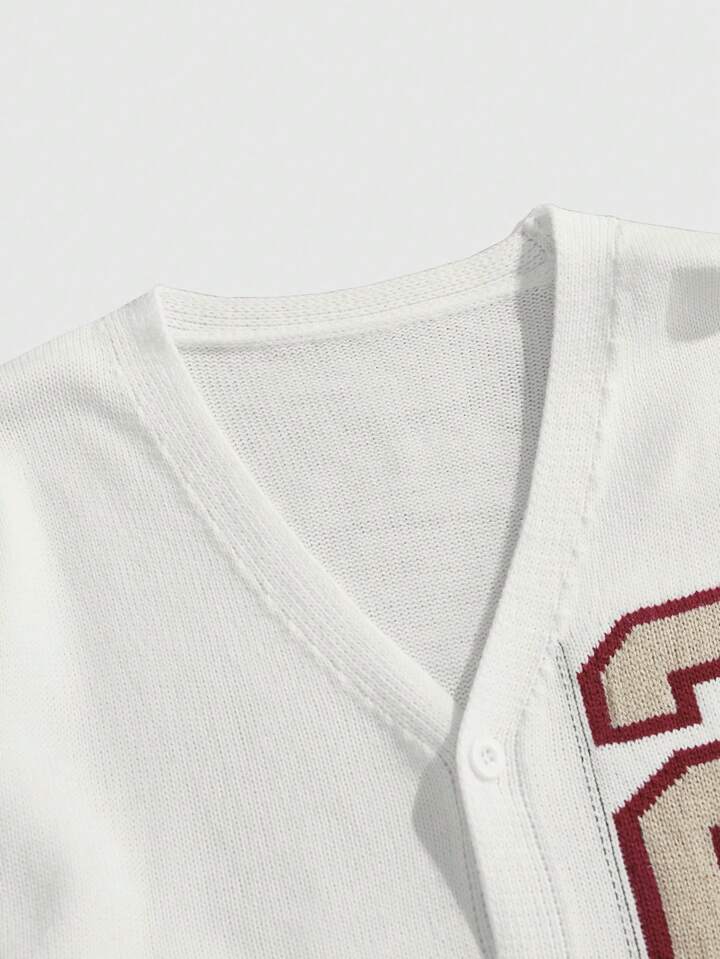 Street Life Men's Letter Jacquard V-Neck Long Sleeve Casual Cardigan With Pocket, Suitable For Everyday Wear