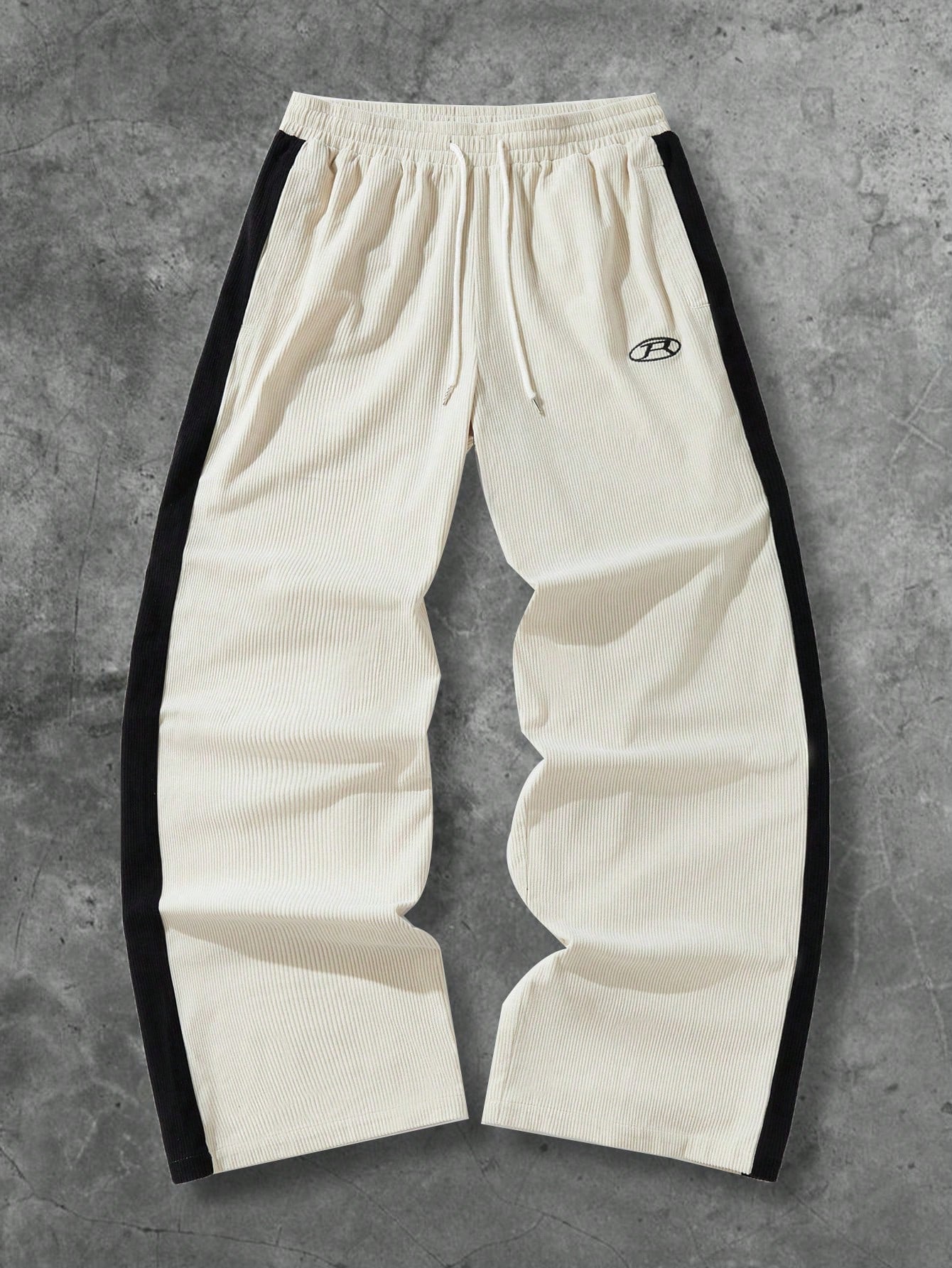 Street Life Men's Letter Print Contrast Color Drawstring Waist Loose Fit Sweatpants, Fall/Winter