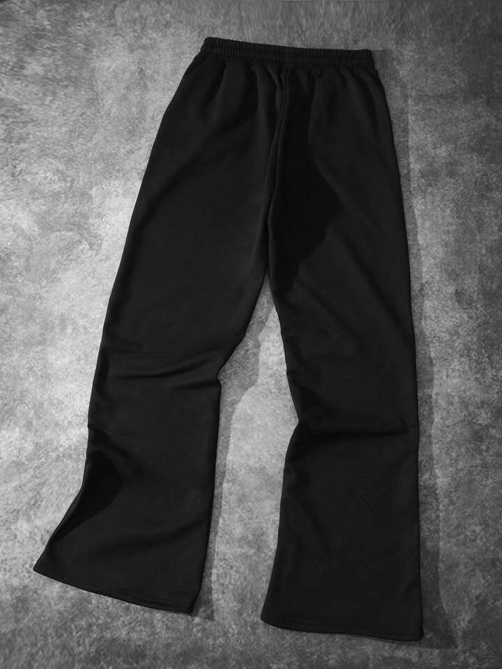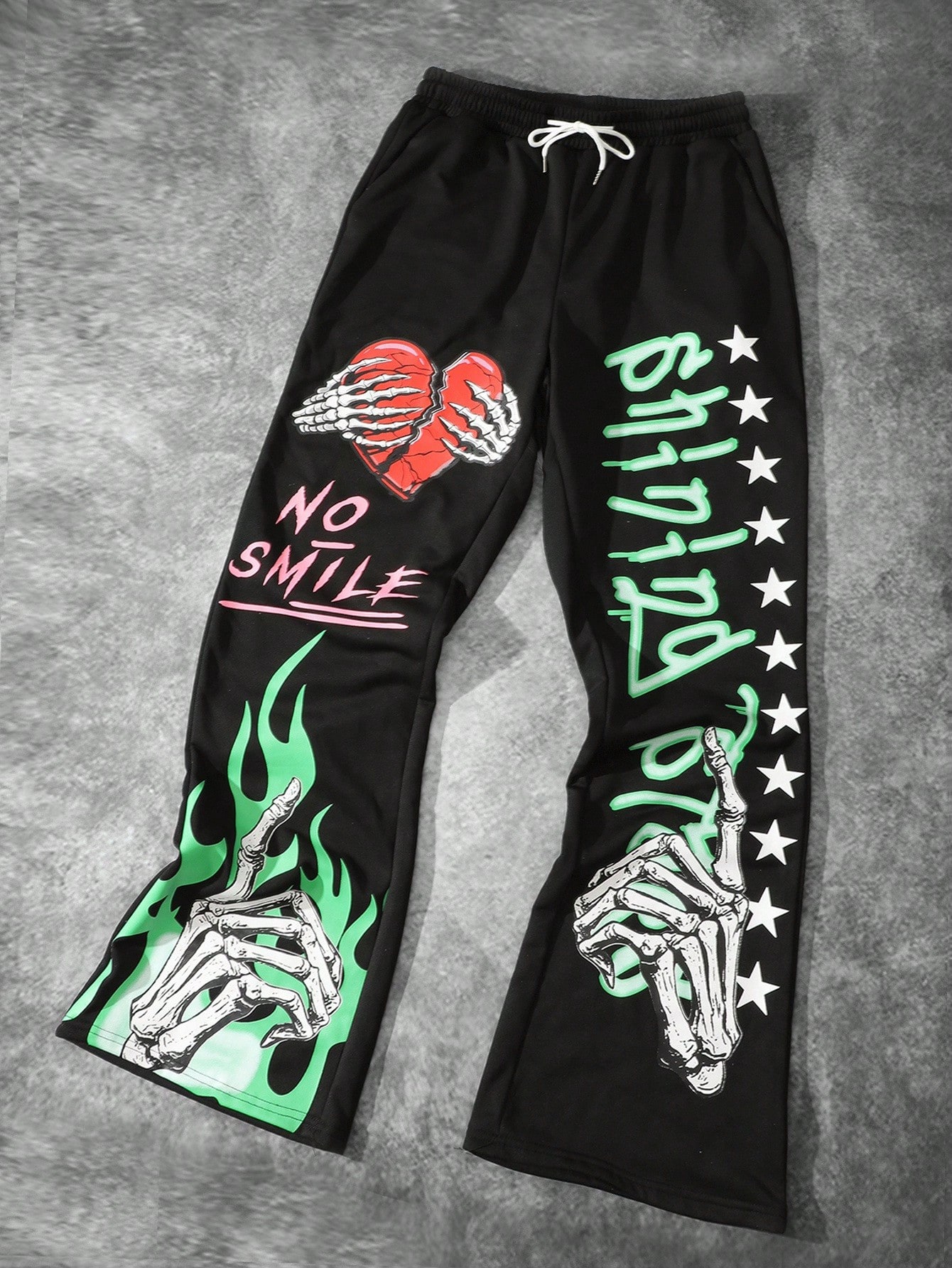 Street Life Men's Letter & Skull Hand Print Drawstring Waist Casual Layered Flare Sweatpants