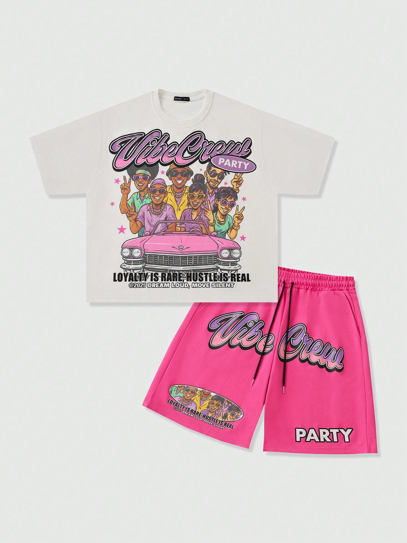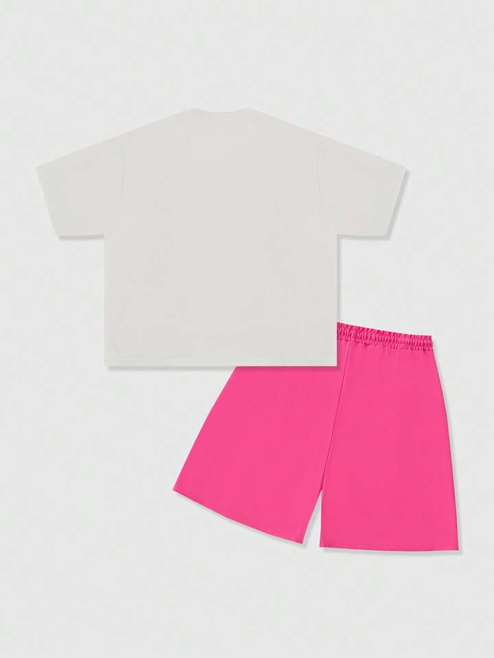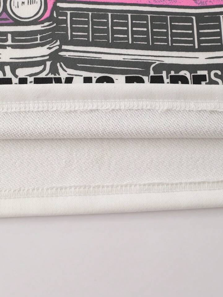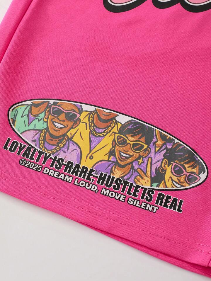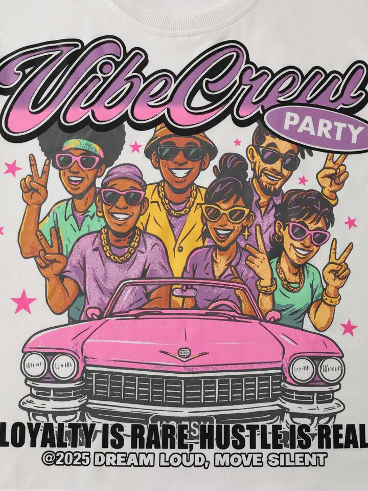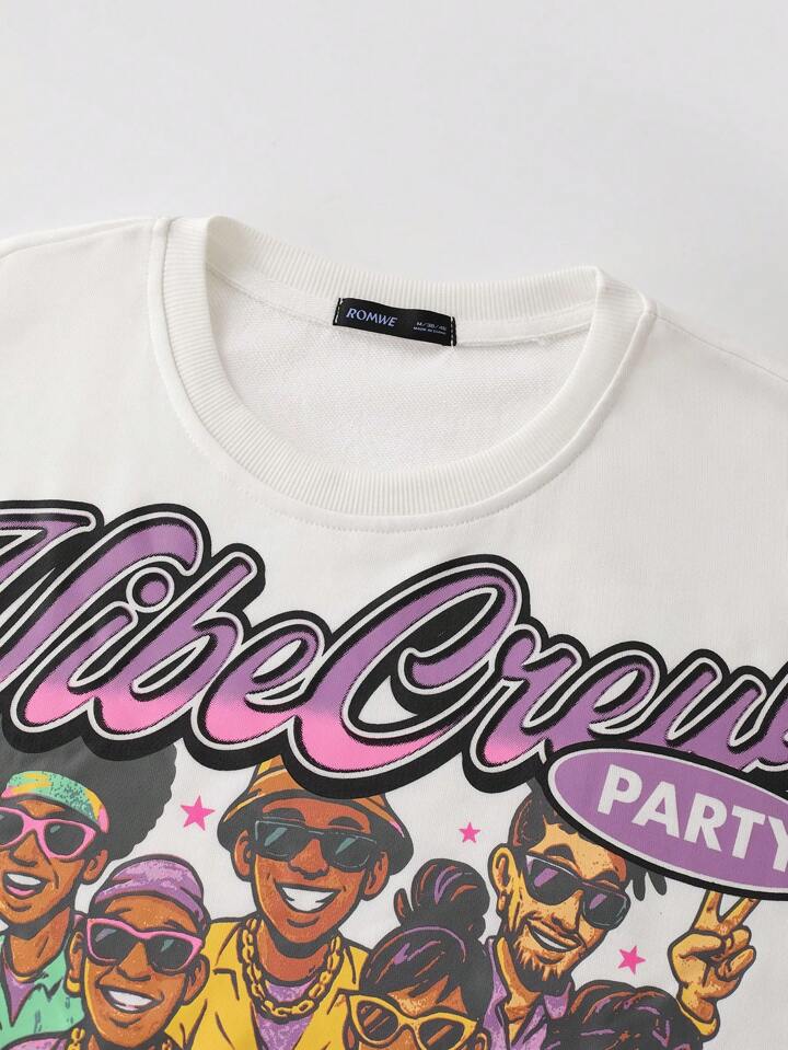 Street Life Men's Loose Cropped Graphic Figure Print T-Shirt Set, Retro Streetwear Style