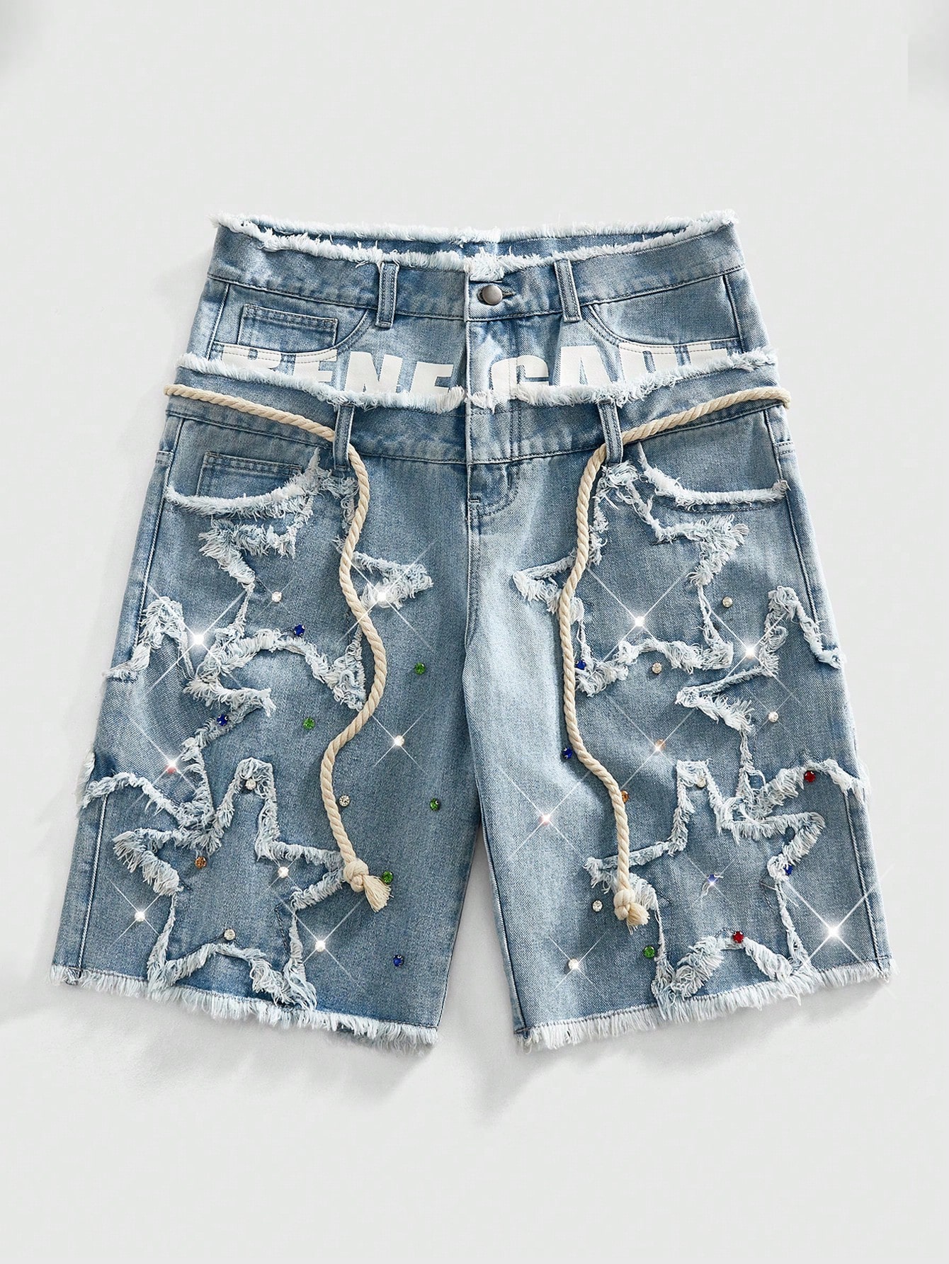 Street Life Men's Loose Fit Denim Shorts With Sparkling Diamond Waistband