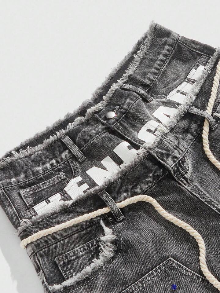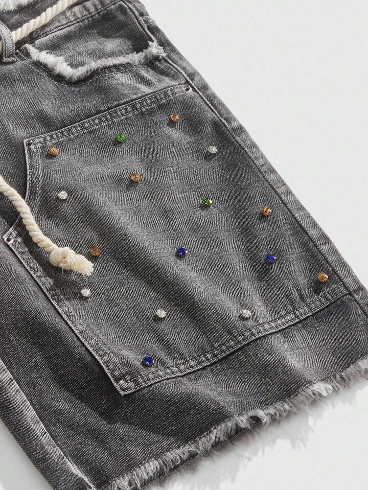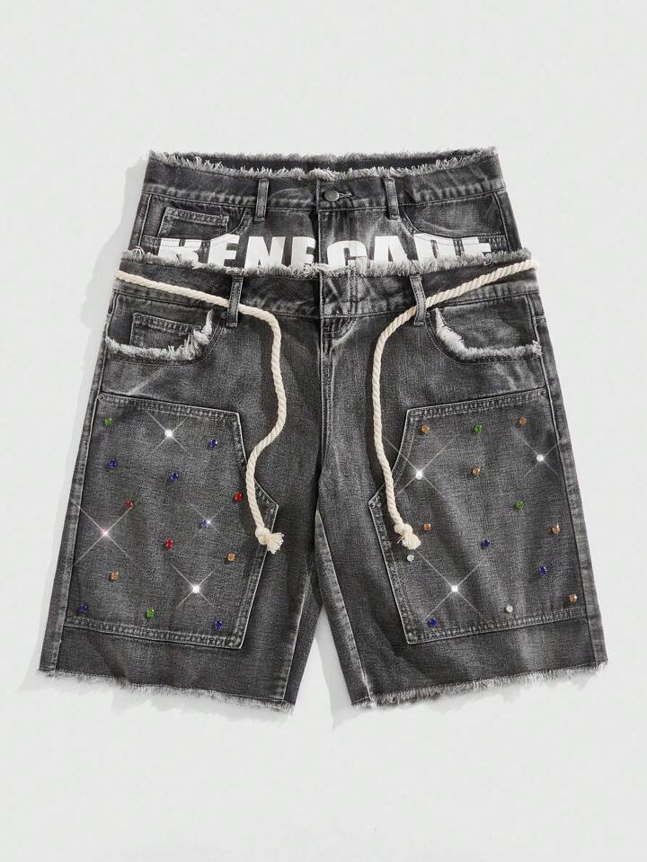 Street Life Men's Loose Fit Double Waistband Sparkling Diamond Denim Shorts
