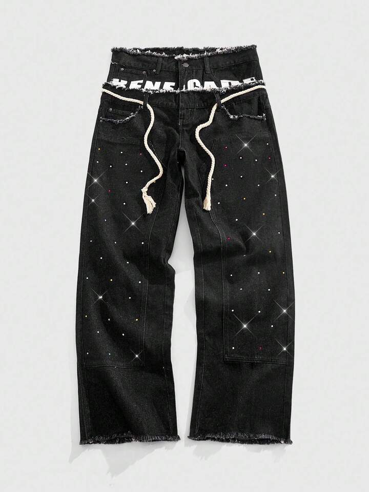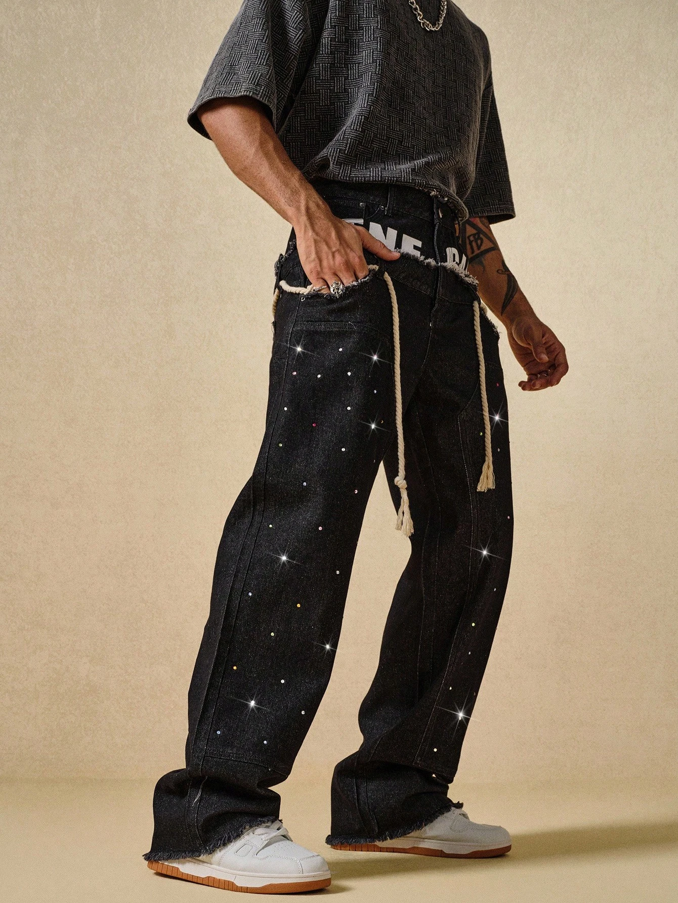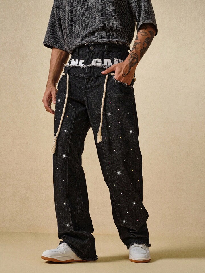 Street Life Men's Loose Fit Jeans With Sparkling Diamond Waistband