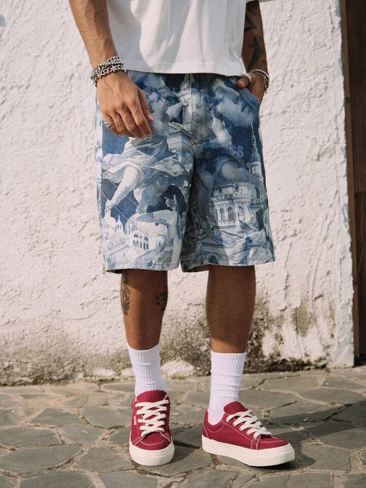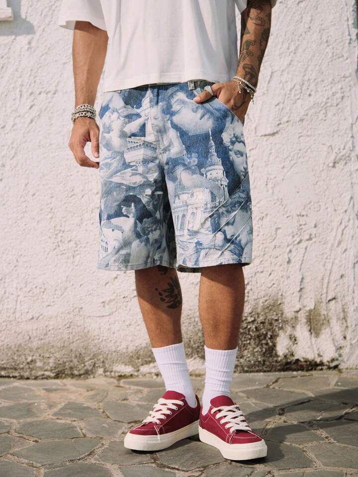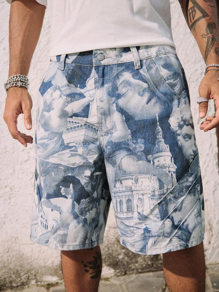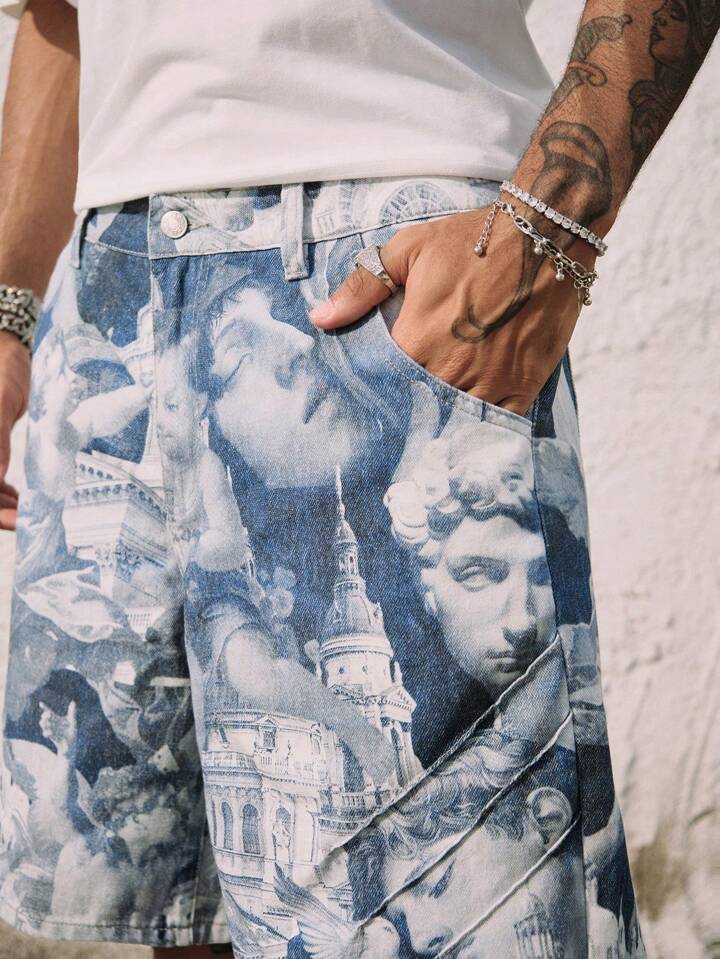 Street Life Men's Loose Fit Sculptural Pattern Insert Pocket Denim Shorts