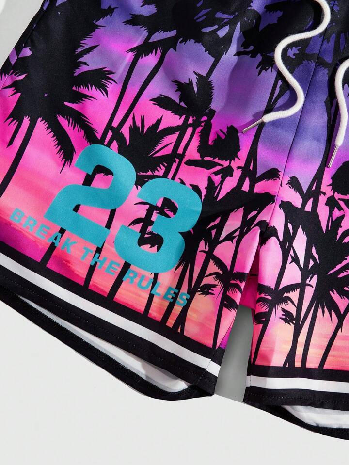 Street Life Men's Palm Tree & Letter Print Drawstring Waist Basketball Shorts