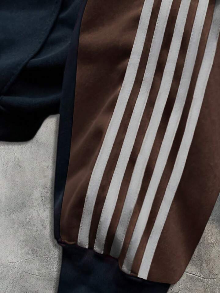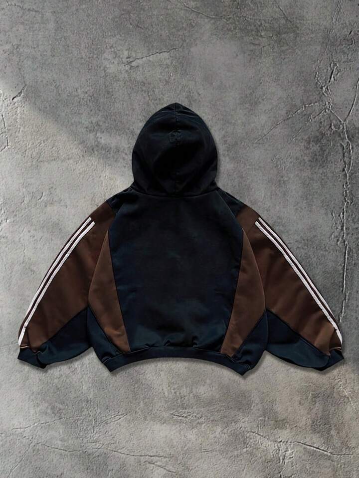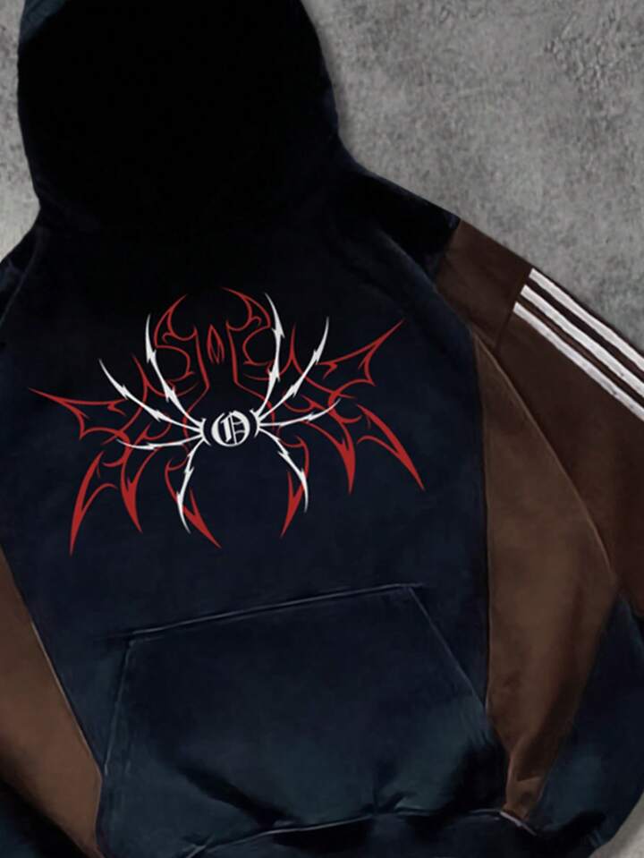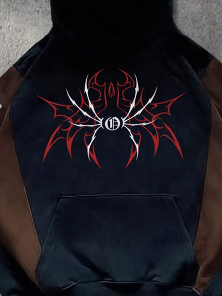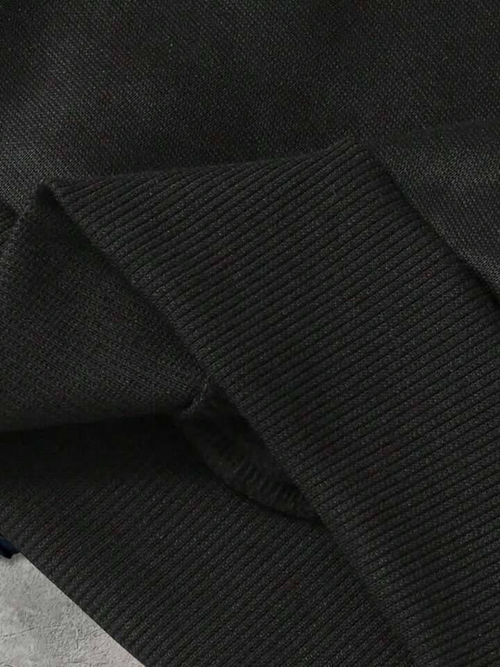 Street Life Men's Patchwork Contrast Color Hoodie, Loose Cropped Style, Long Sleeve Top