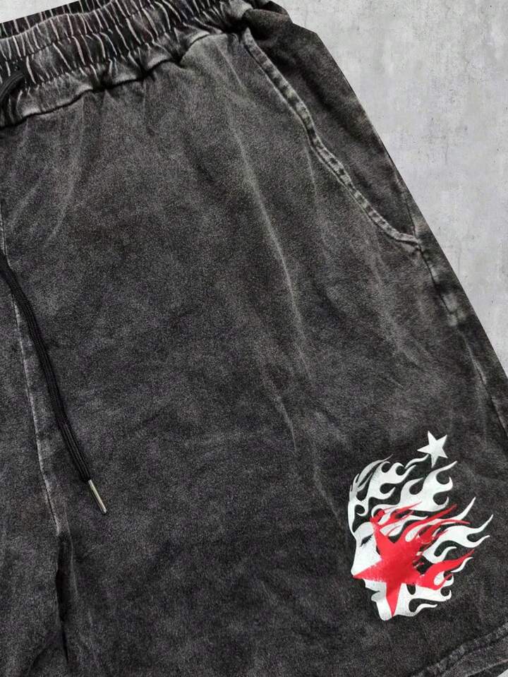 Street Life Men's Pentagram Print Shorts, Suitable For Daily Wear