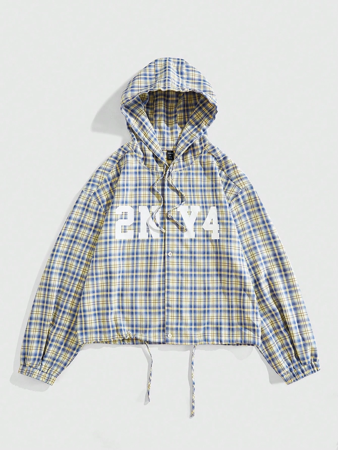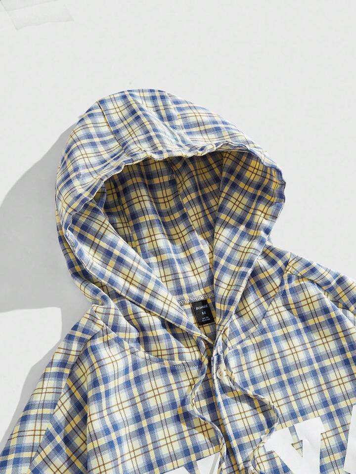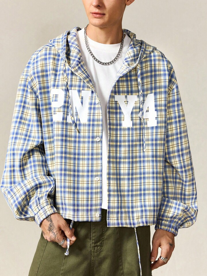 Street Life Men's Plaid Hooded Overcoat, Loose Cropped Style, Fall/Winter