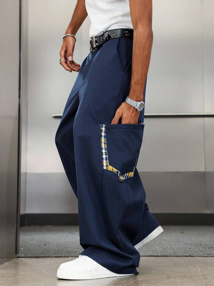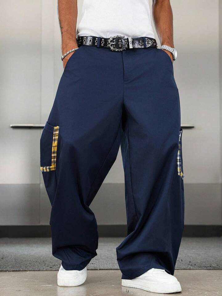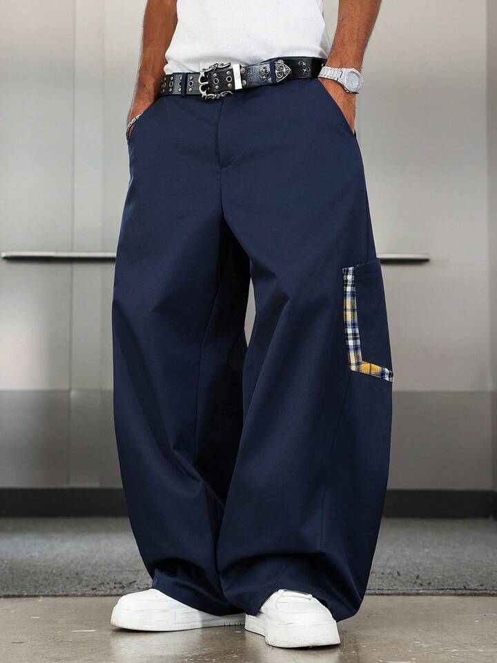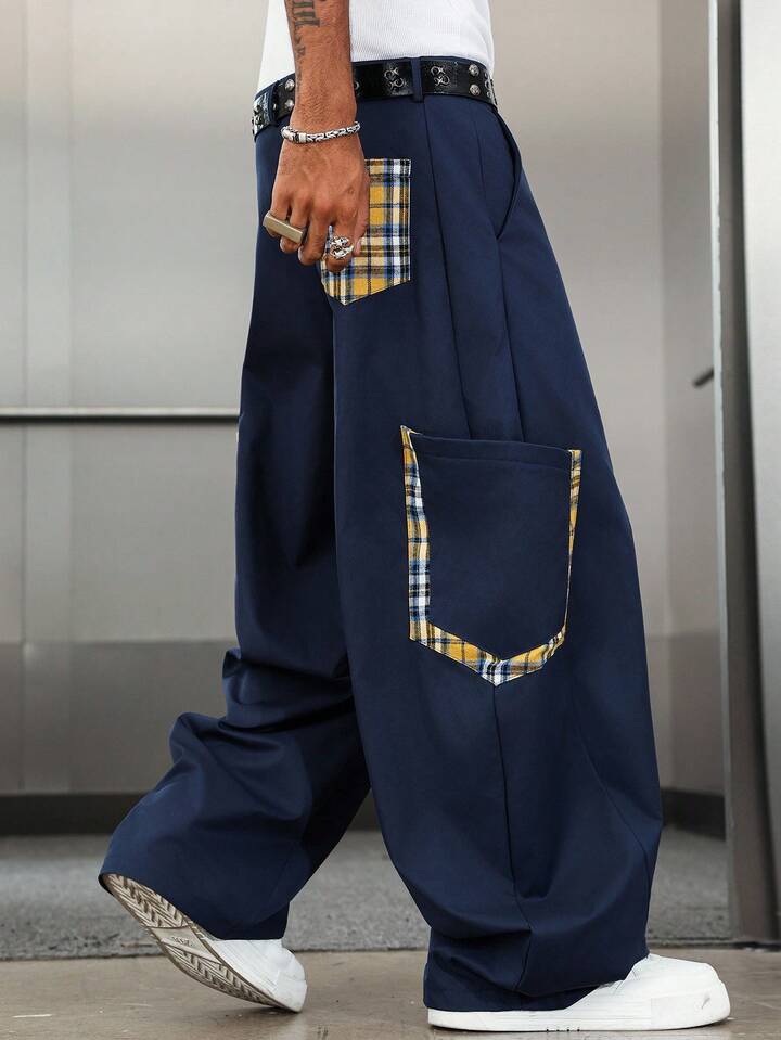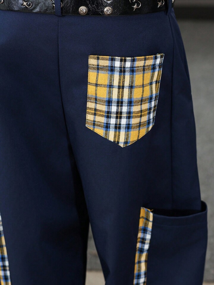 Street Life Men's Plaid Patchwork Casual Pants, Collegiate Style, Fall
