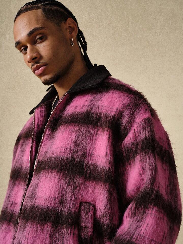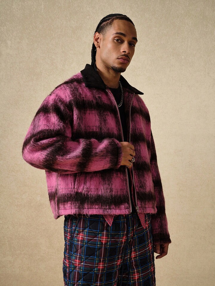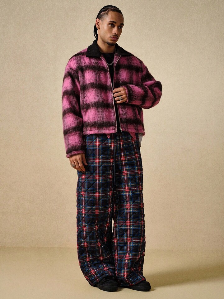 Street Life Men's Plaid Woolen Zip-Up Loose Overcoat , Fall Winter