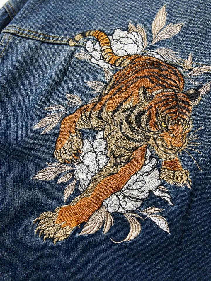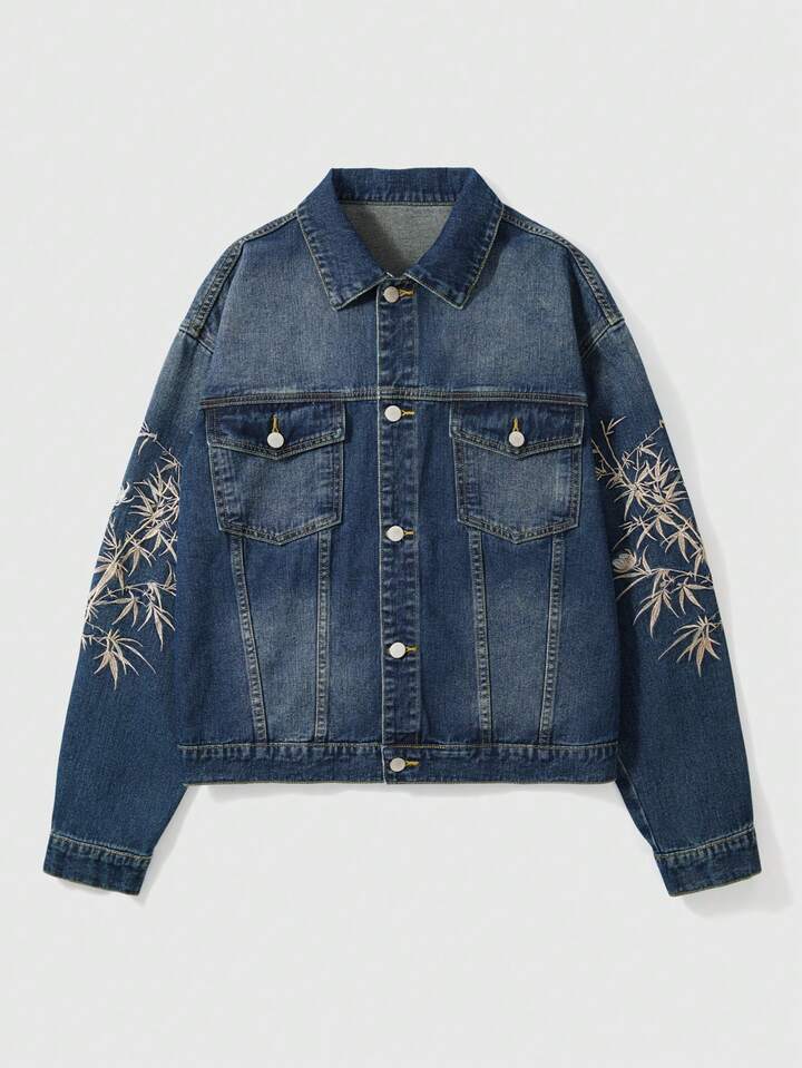 Street Life Men's Plant Embroidery Long Sleeve Single-Breasted Casual Denim Jacket