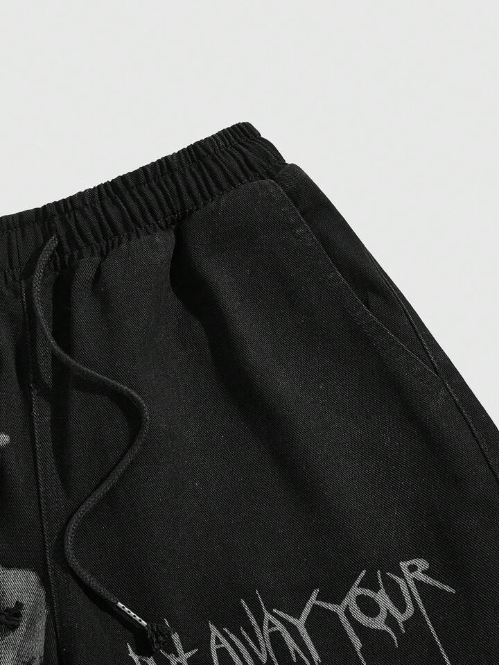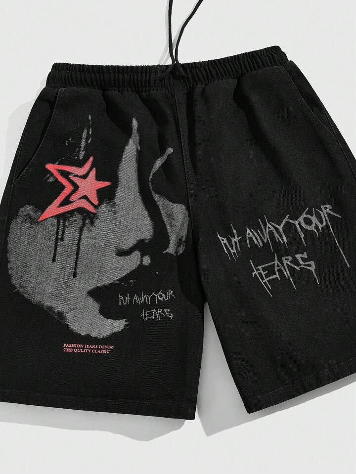 Street Life Men's Portrait Printed Drawstring Denim Shorts, Summer, School