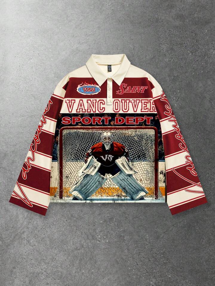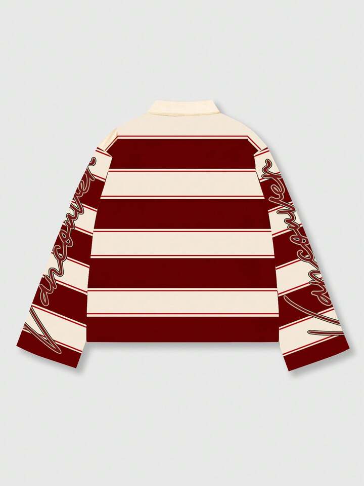 Street Life Men's Preppy Printed Long Sleeve Striped Polo Collar T-Shirt, Casual College Style Top