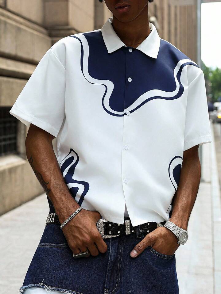 Street Life Men's Printed Loose Short Sleeve Single Breasted Casual Shirt
