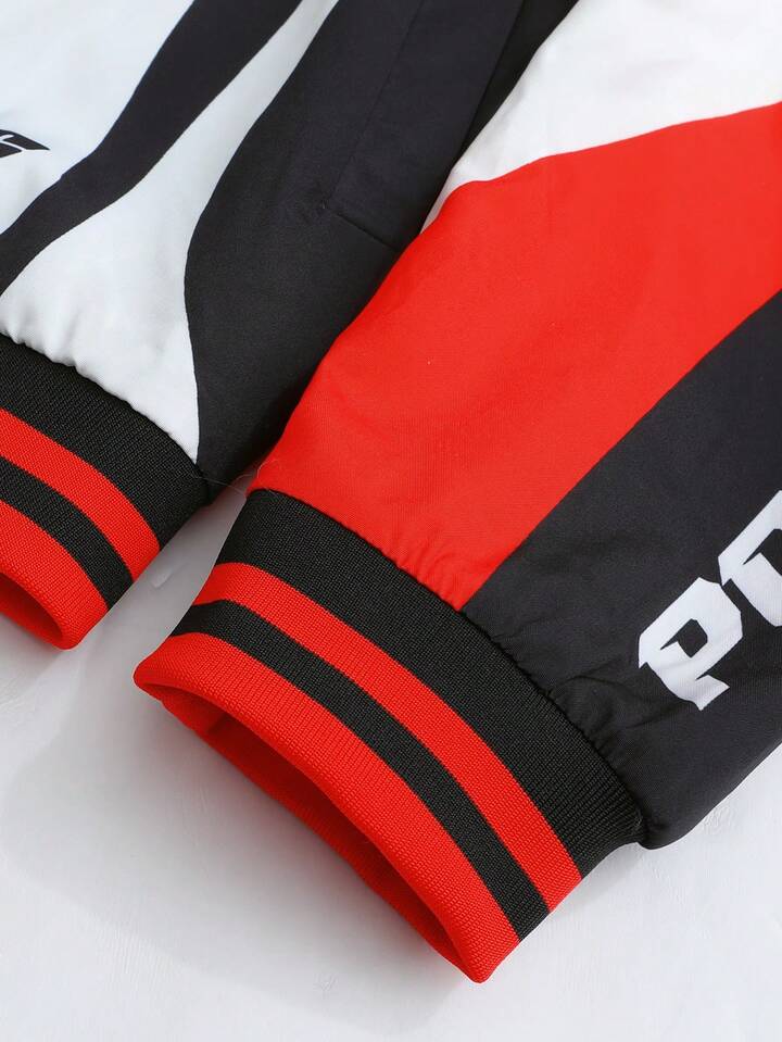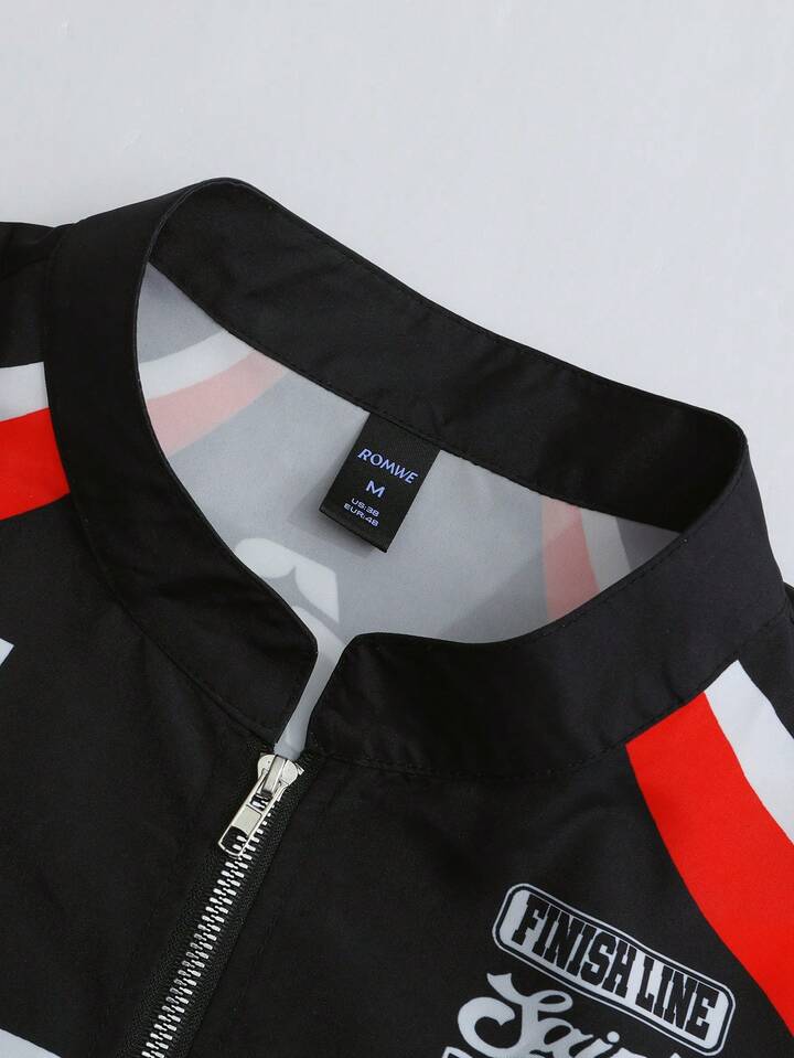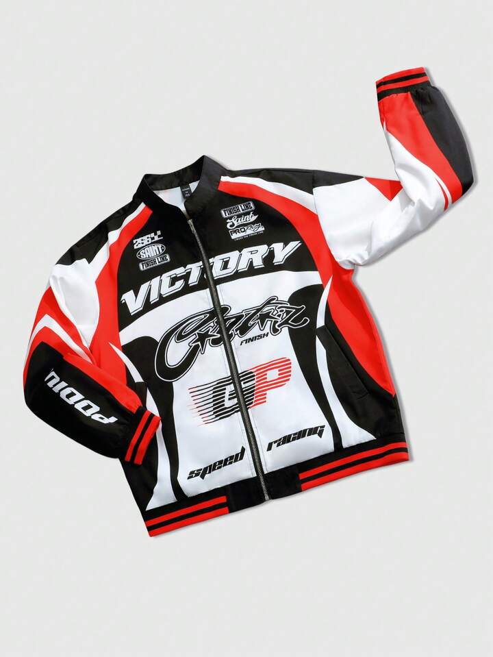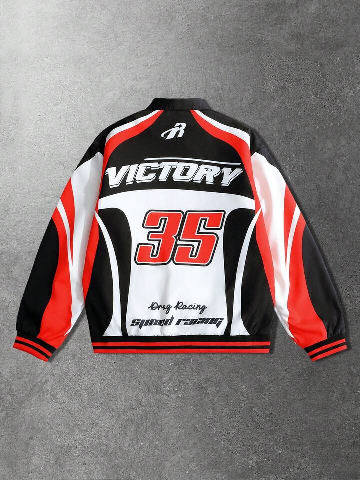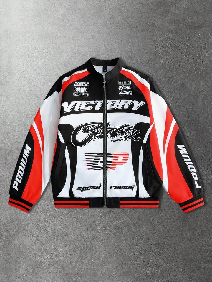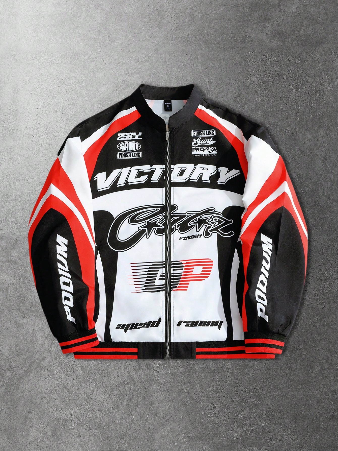 Street Life Men's Racing Element & Letter Print Jacket, Suitable For Autumn/Winter