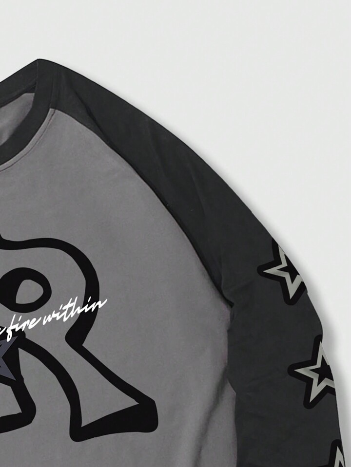 Street Life Men's Raglan Sleeves T-shirt With Color Block And Word Print Detail