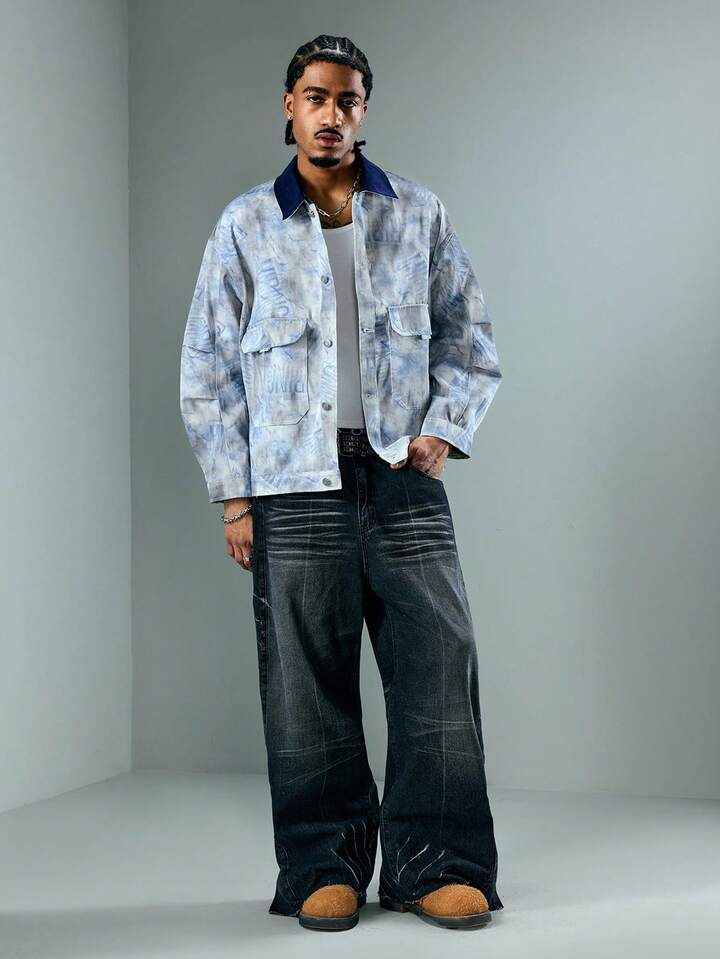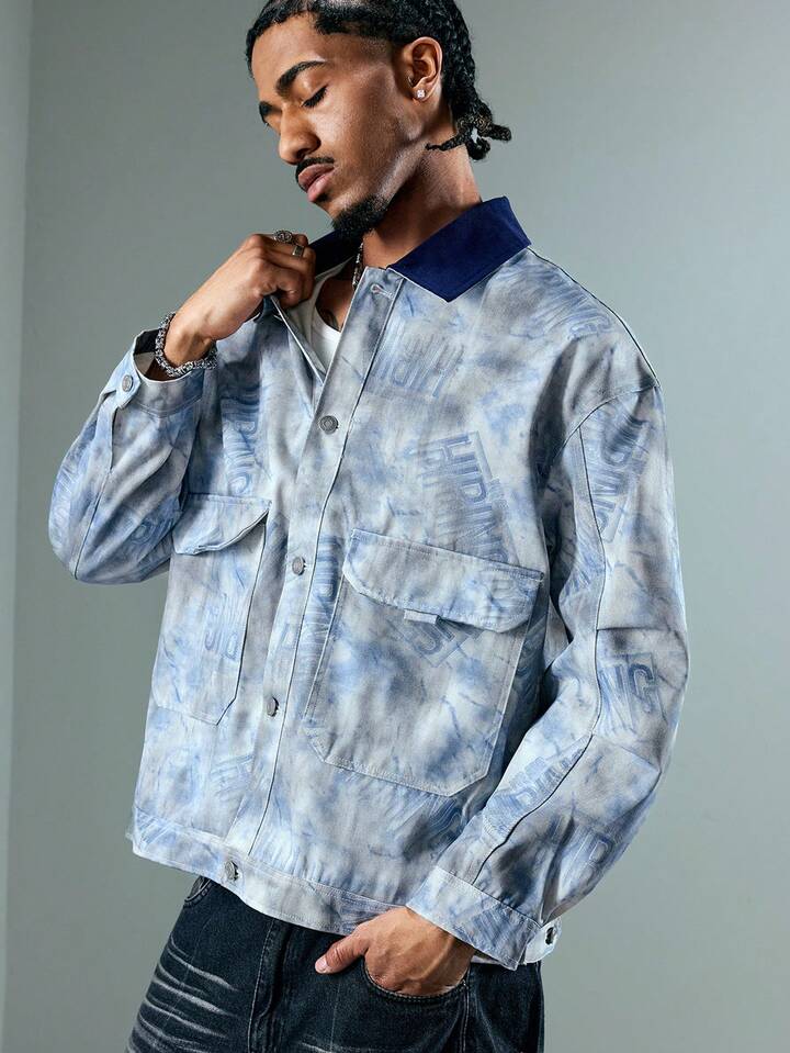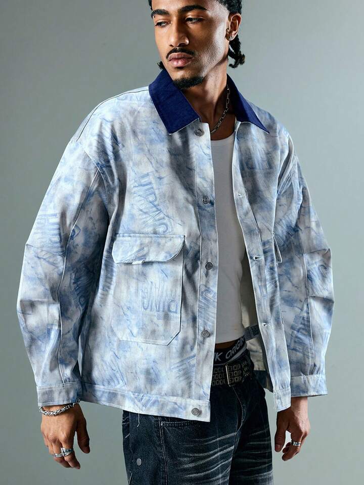 Street Life Men's Random Print Long Sleeve Fashionable Jacket