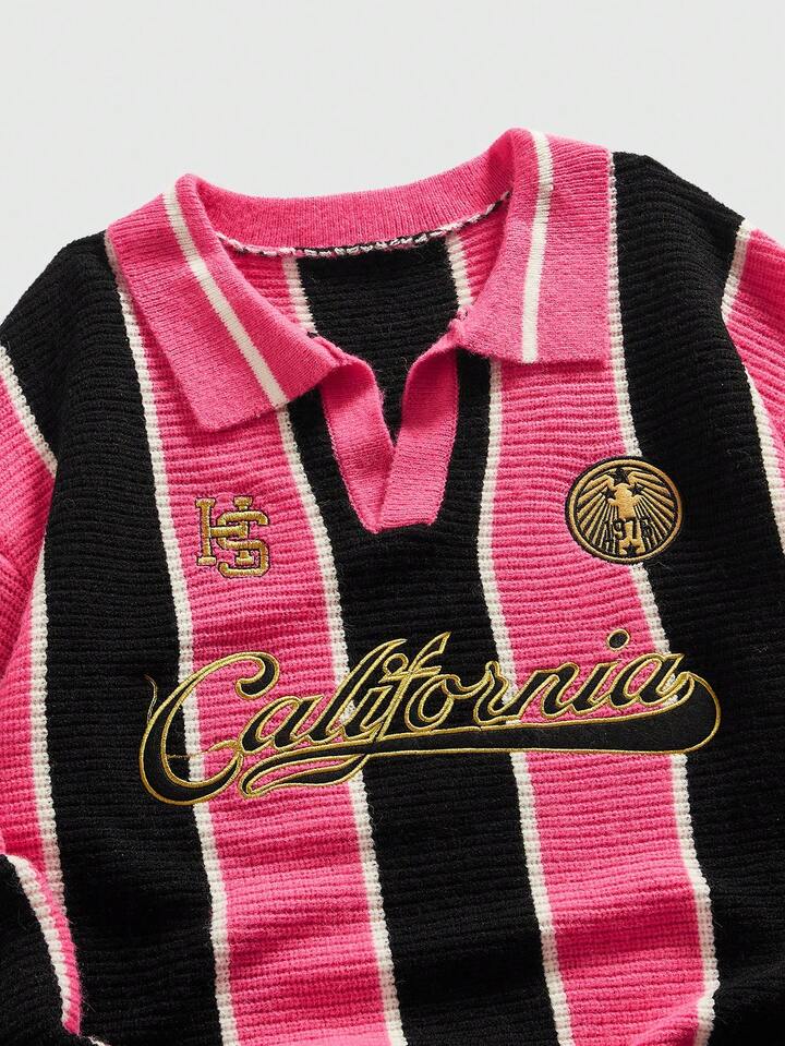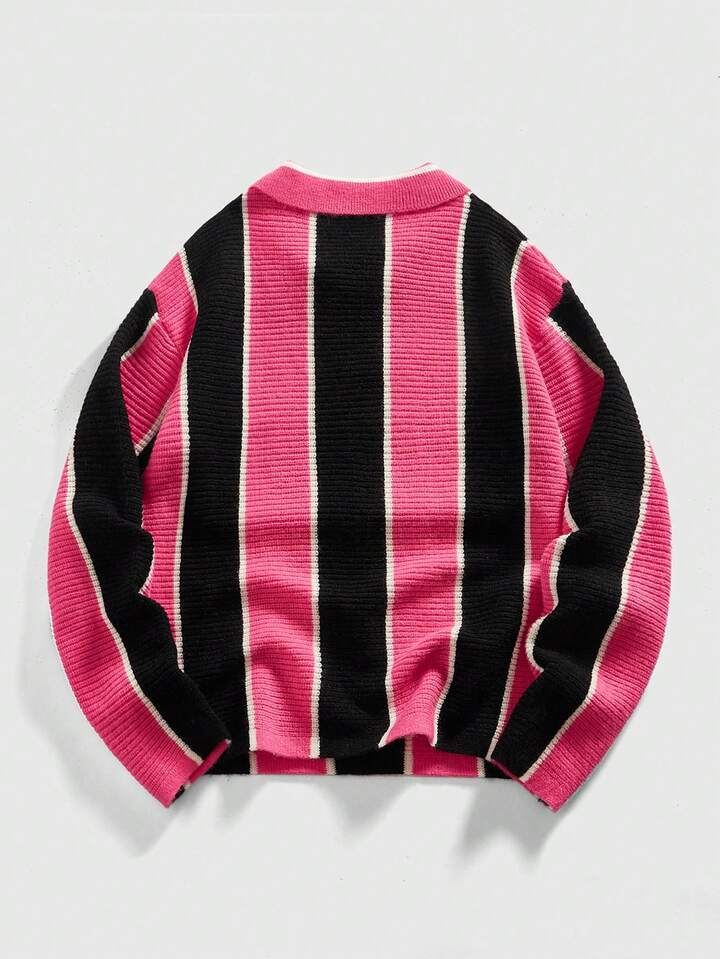 Street Life Men's Retro Collared Football Inspired Knit Sweater, Streetwear Style
