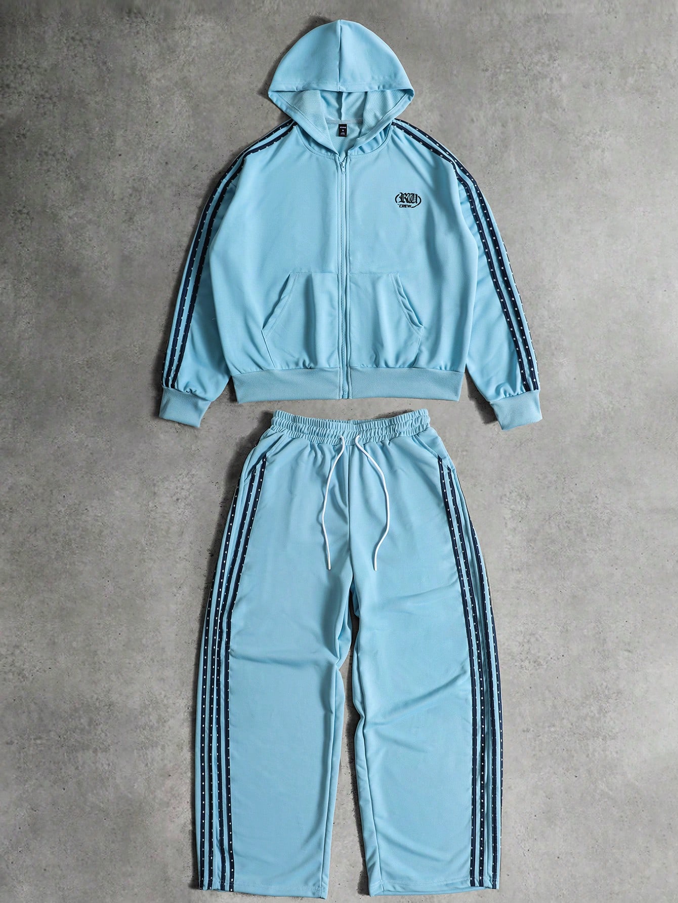 Street Life Men's Retro Contrast Stripe Hoodie And Sweatpants Set