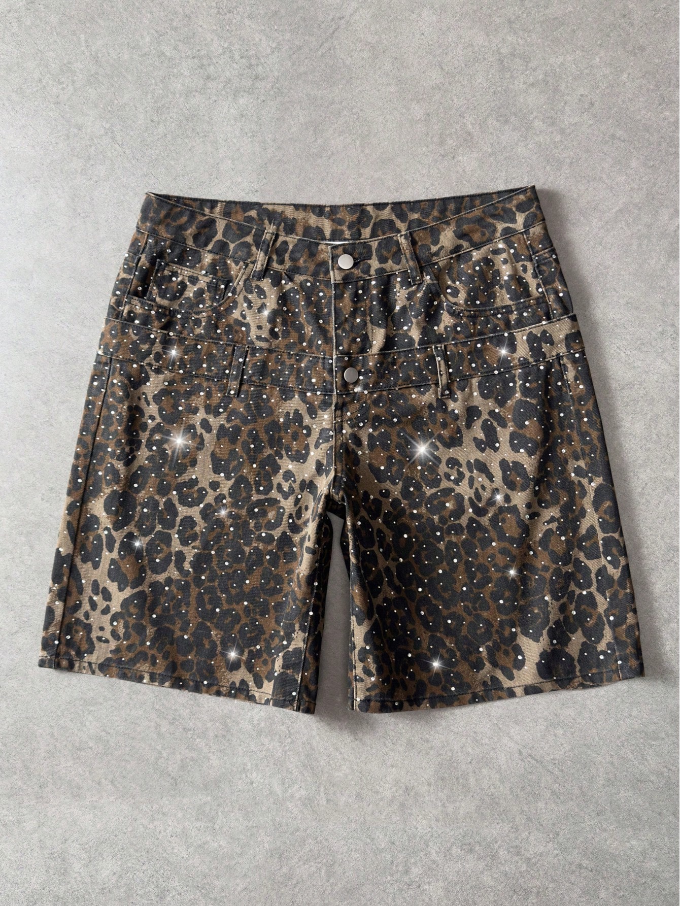 Street Life Men's Rhinestone Embellished Leopard Print Denim Shorts