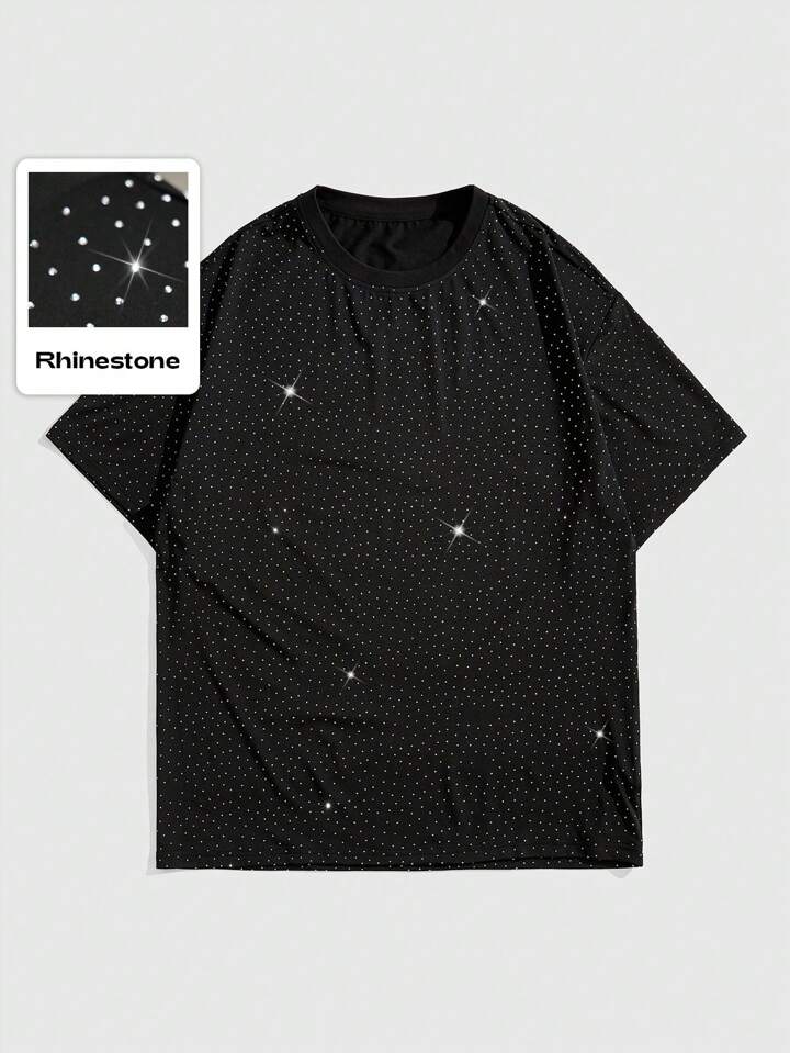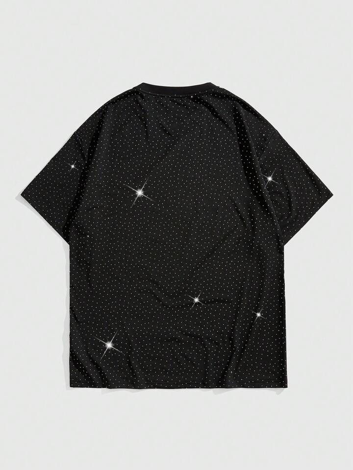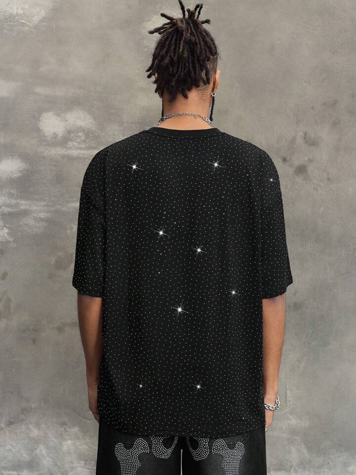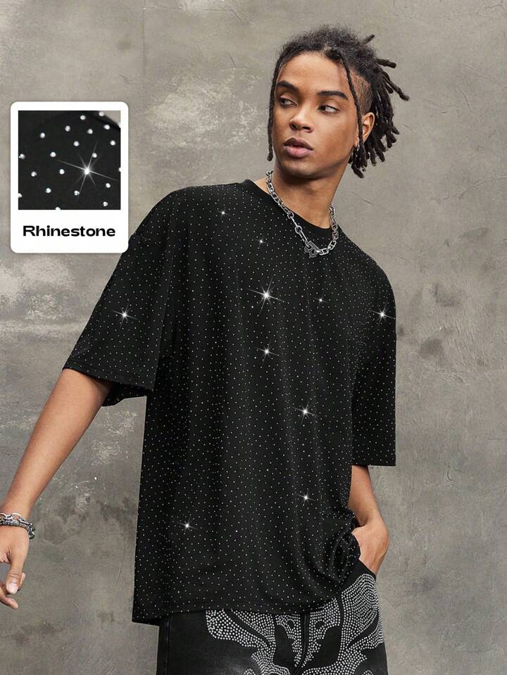 Street Life Men's Rhinestone Embellished Round Neck Short Sleeve Casual Versatile T-Shirt, Rave