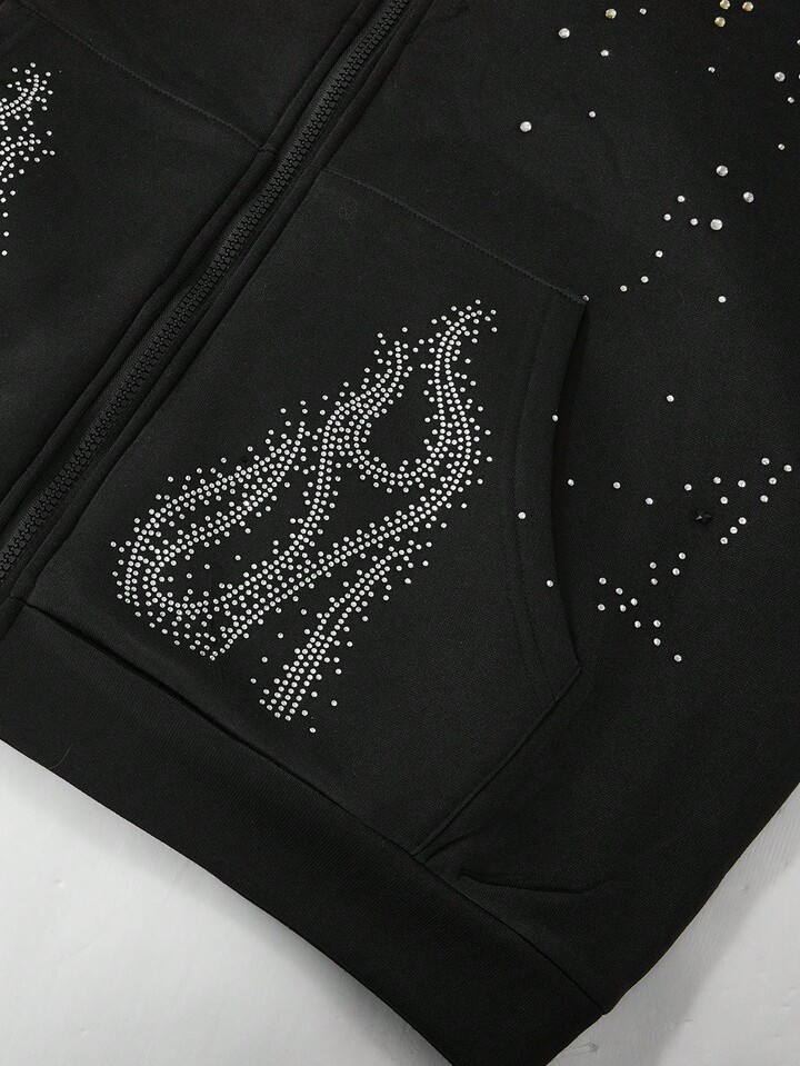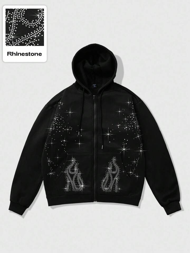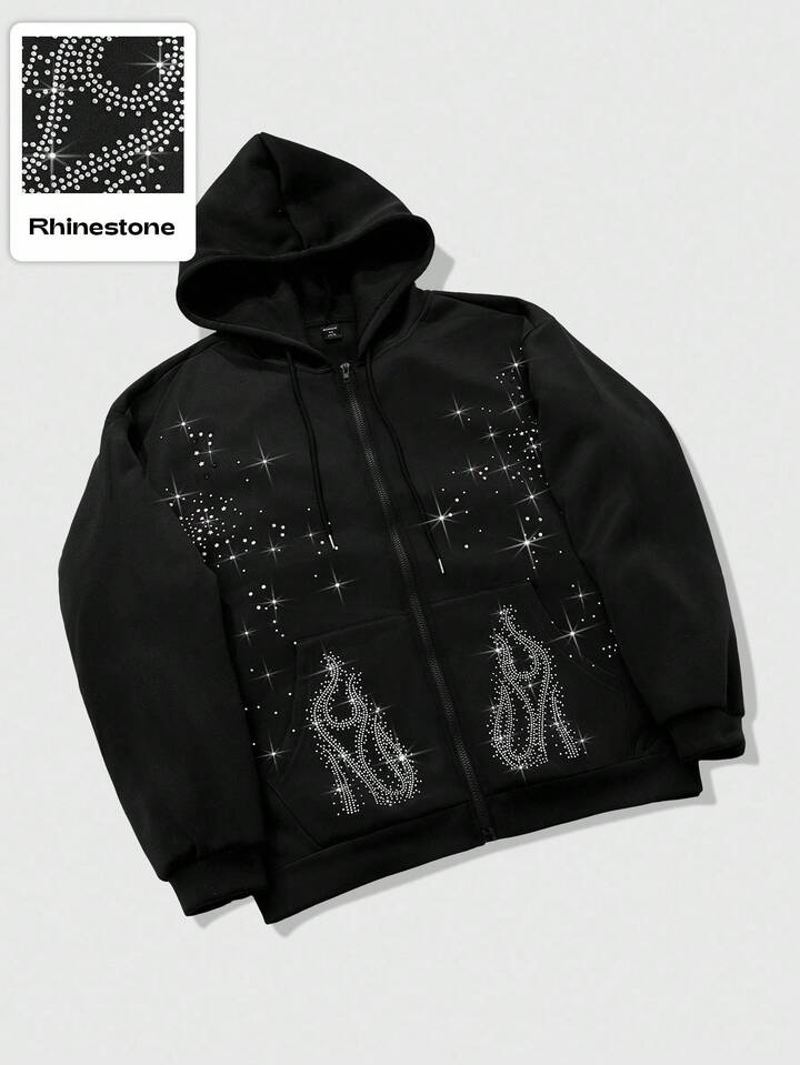 Street Life Men's Rhinestone Embellished Sweatshirt, Suitable For Everyday Wear In Autumn/Winter