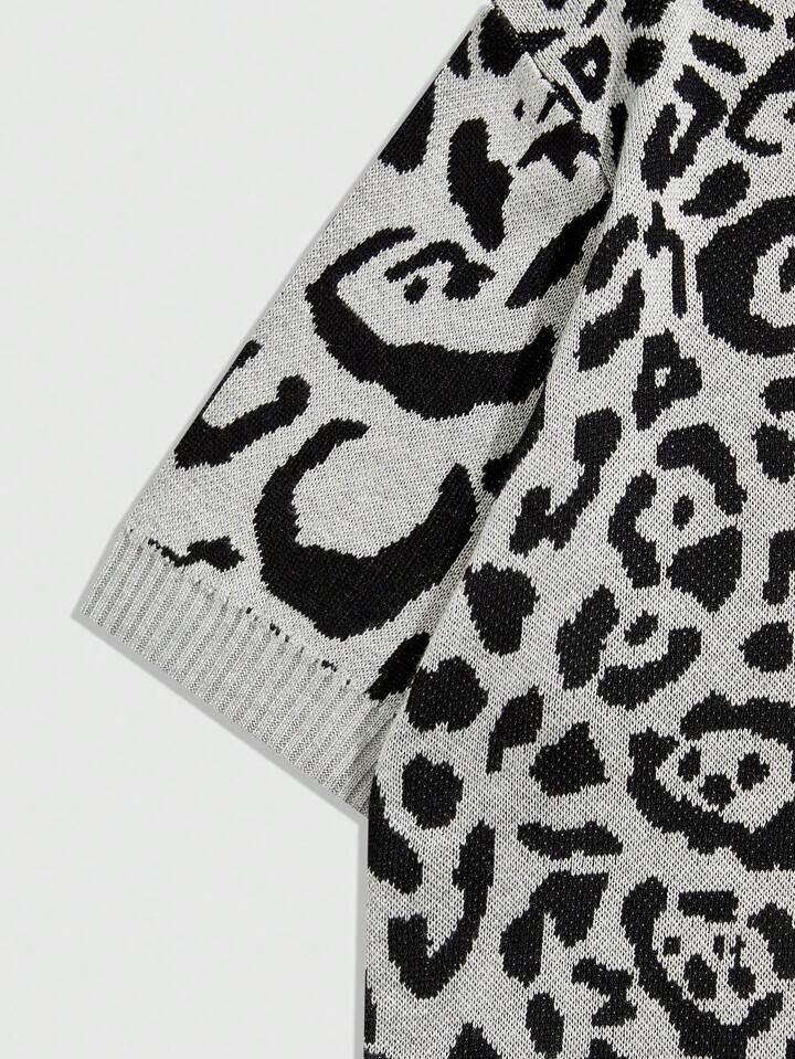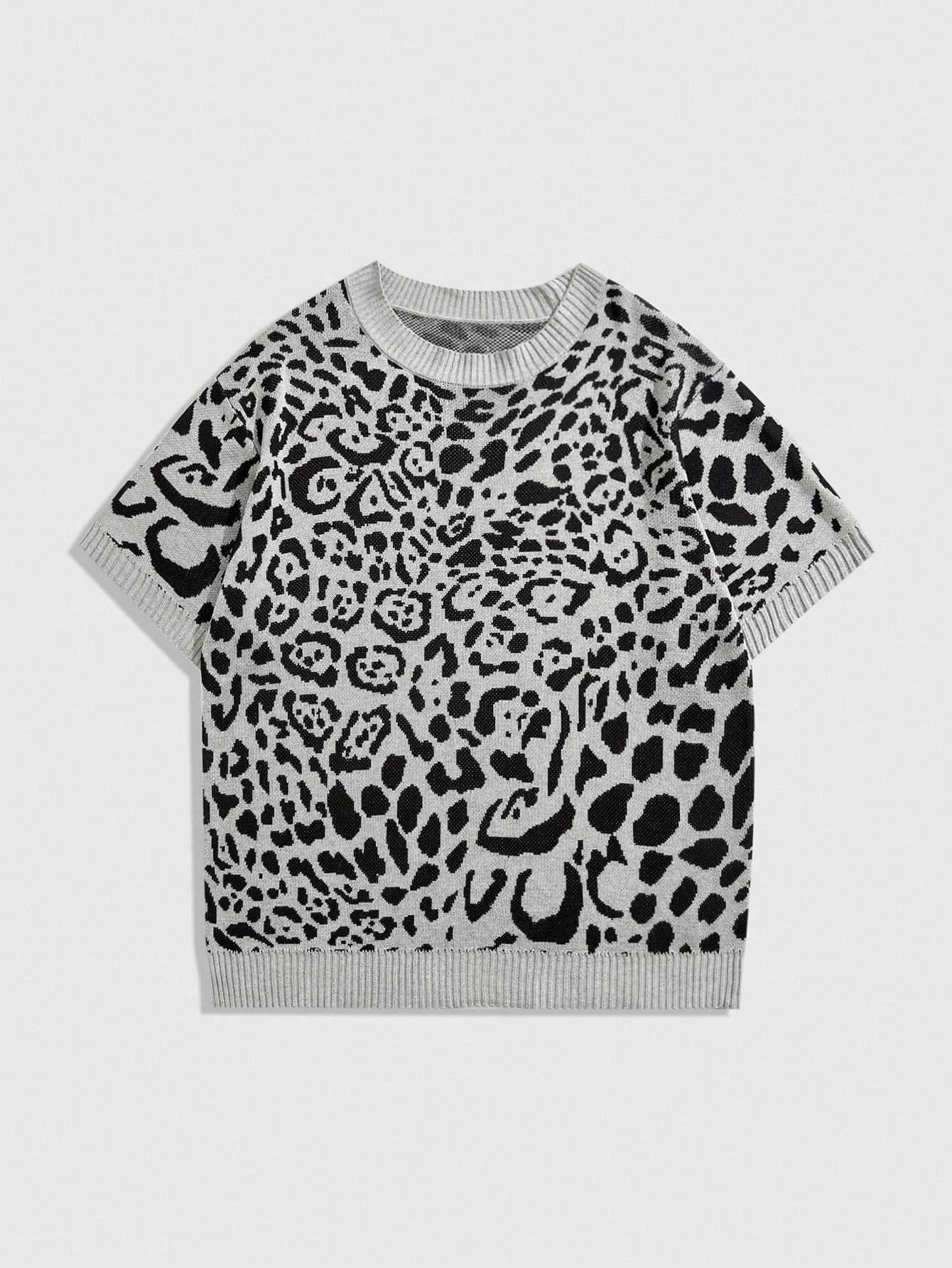 Street Life Men's Round Neck Leopard Print Knitted Top, Streetwear Fashion