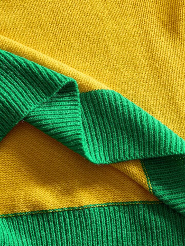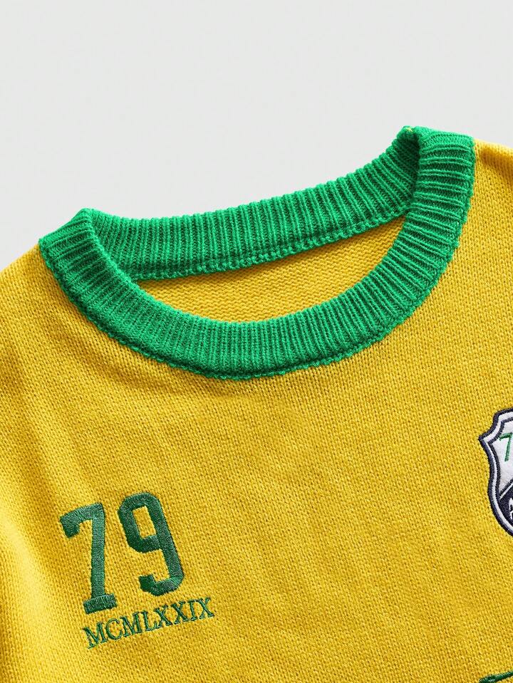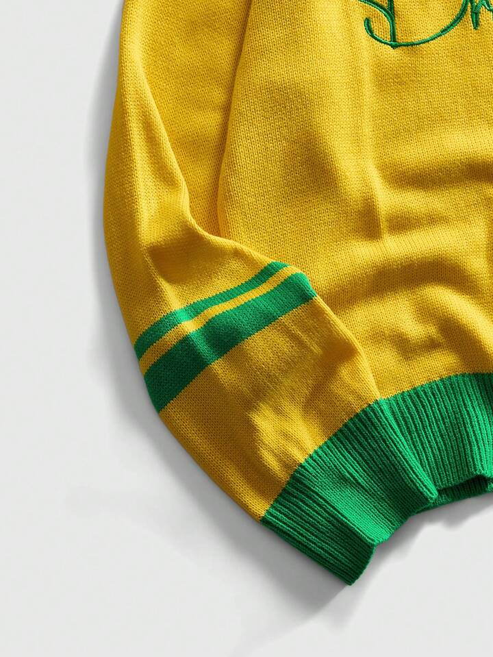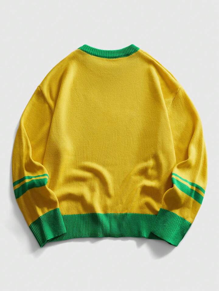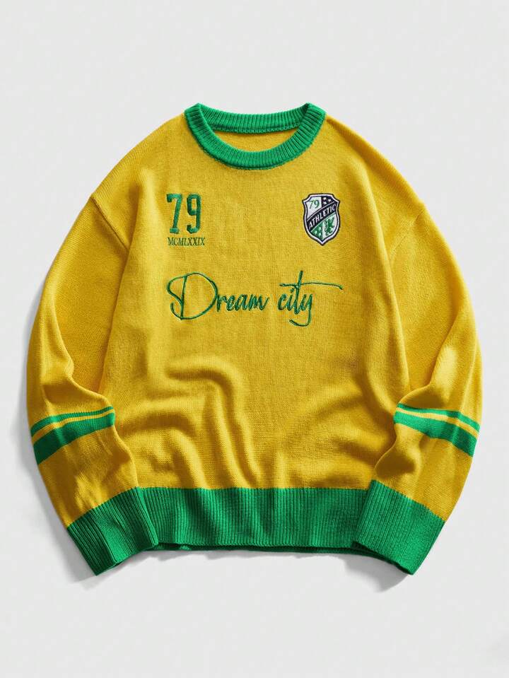 Street Life Men's Round Neck Preppy Football Knit Sweater, Streetwear Sports