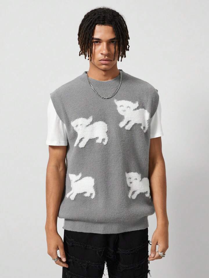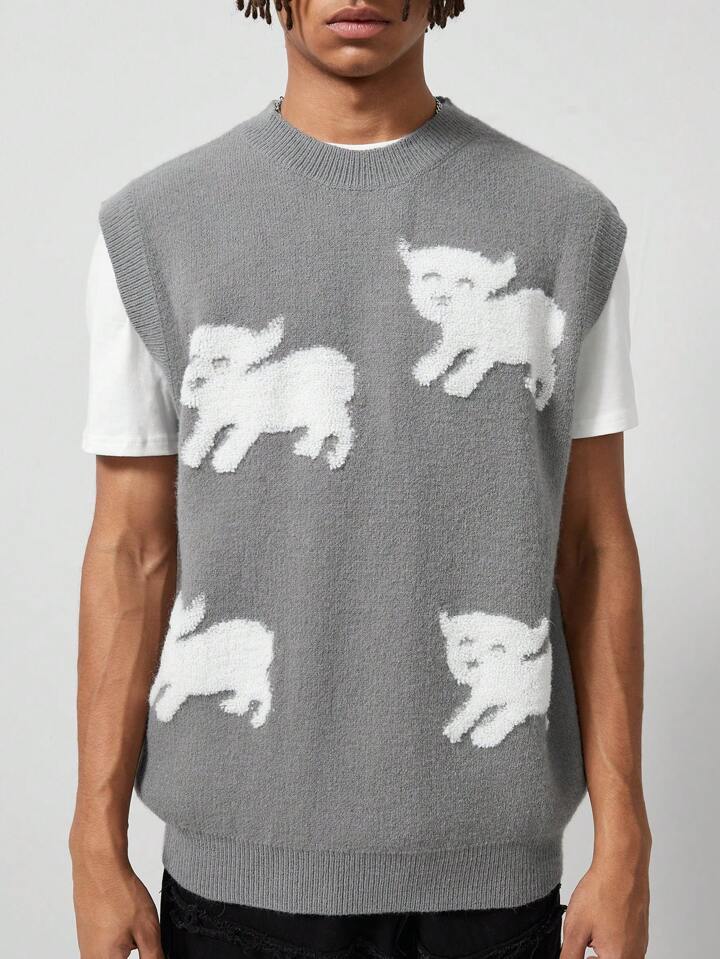Street Life Men's Round Neck Sleeveless Daily Casual Loose Comfortable Fun Sweater Vest, School