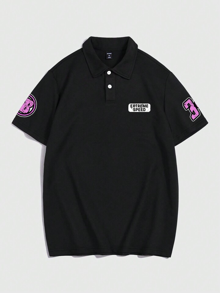 Street Life Men's Short Sleeve Polo Shirt With Letter Print